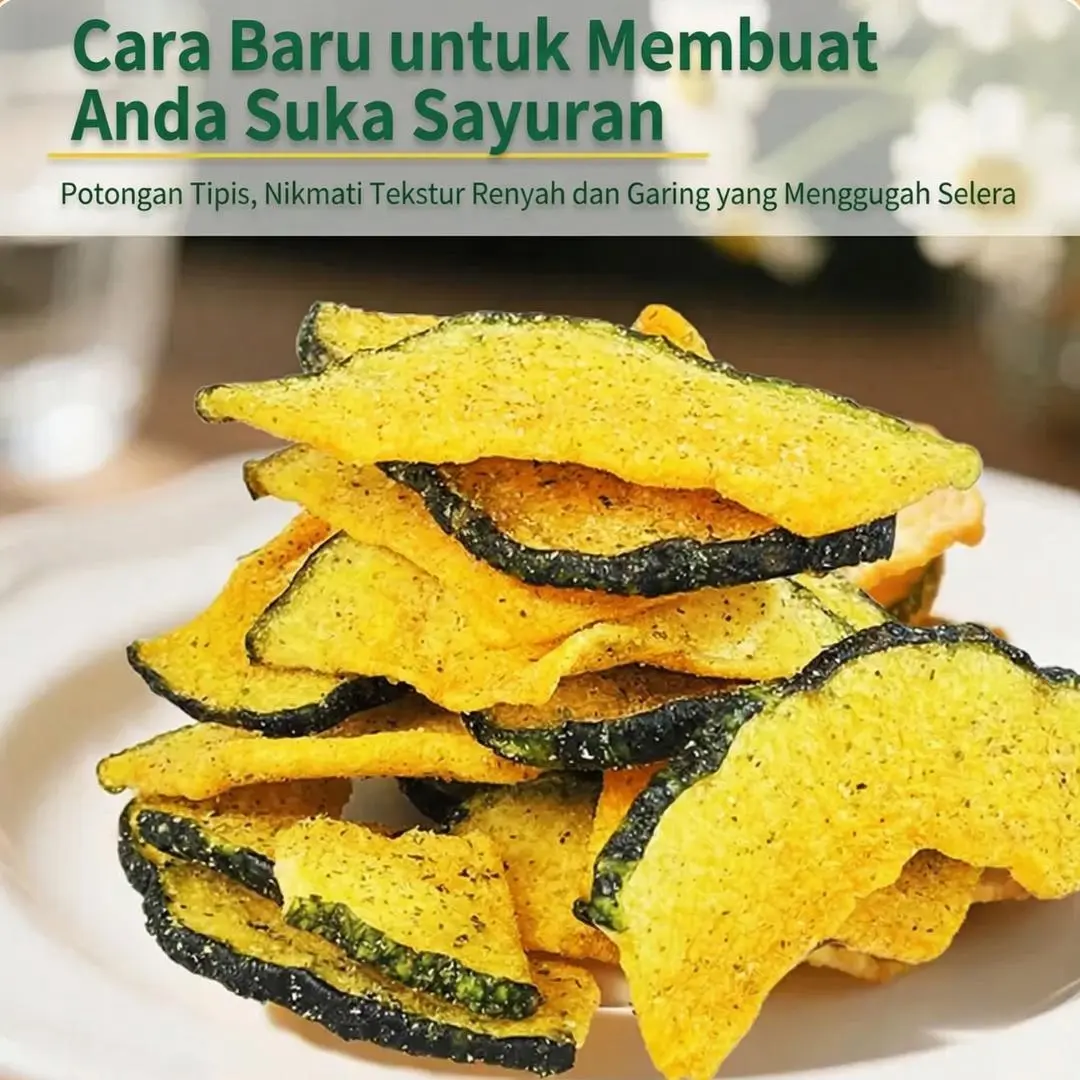 ·Teknologi VF (Vacuum Frying): Membuat keripik menjadi renyah, empuk, menjaga warna emas alami, serta tidak berminyak atau bau tengik seperti snack biasa.