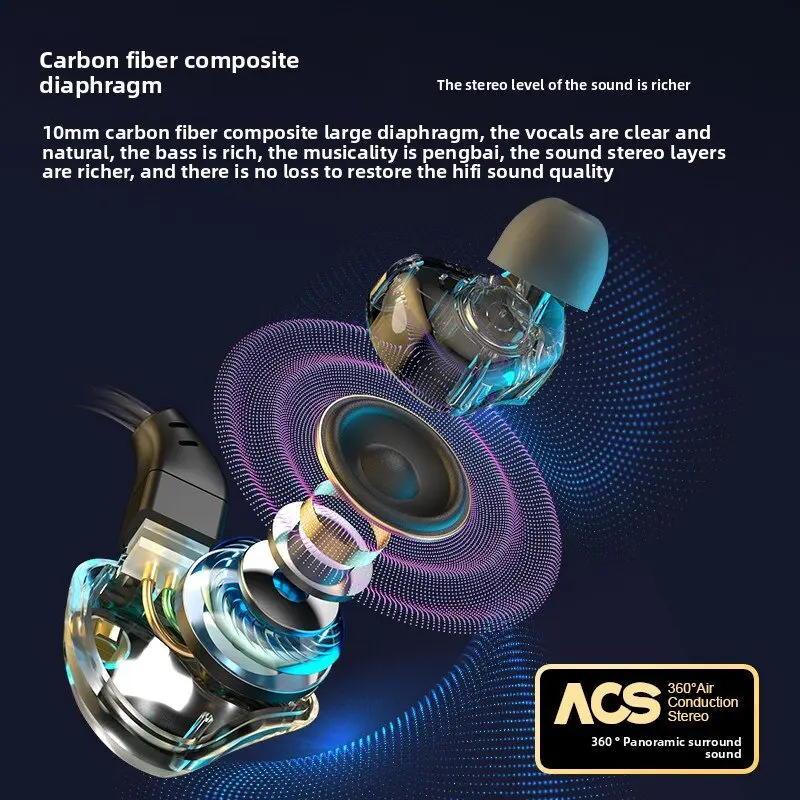 lebih kaya stereo suara, 10mm serat karbon komposit besar, suara manusia yang jelas dan alami, bass yang tebal dan menyenangkan, lebih kaya stereo suara, berkualitas suara HIFI yang tidak merusak