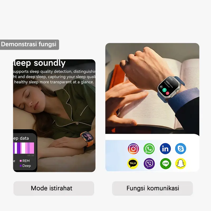 ·Pemantau Kesehatan 24/7: Pantau denyut jantung, kualitas tidur, dan kondisi kesehatan Anda secara penuh sepanjang hari