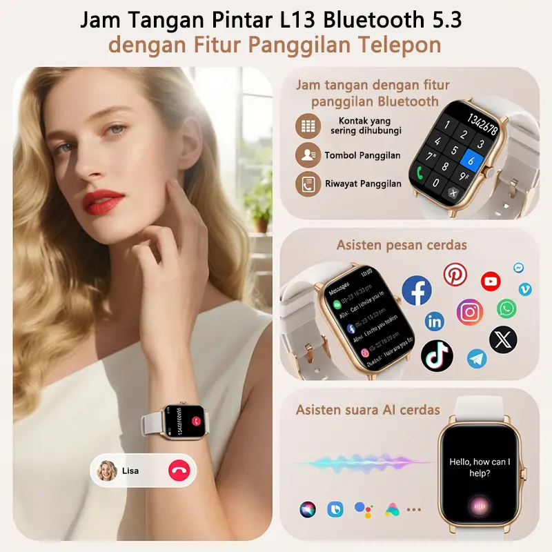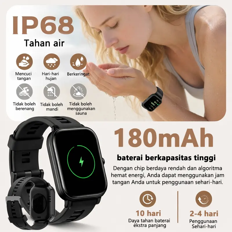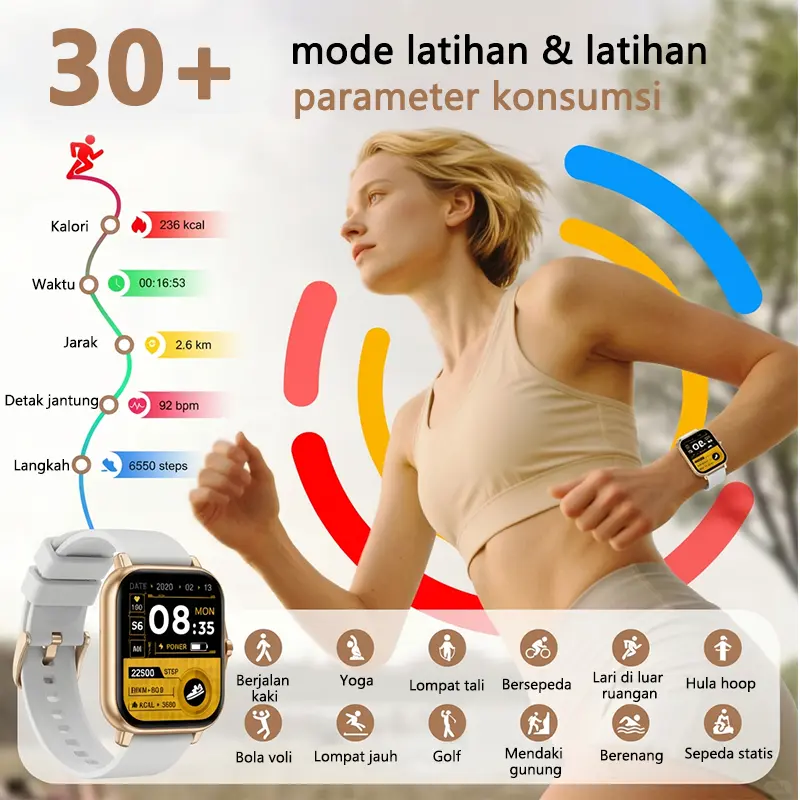 Jam Tangan Pintar Smartwatch adalah pilihan tepat untuk Anda yang mencari smartwatch dengan layar HD, panggilan Bluetooth, berbagai mode olahraga, dan pemantauan kesehatan. Dukungan COD menambah kenyamanan pembelian.