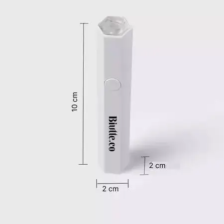 Produk dari Biutte.co ini hadir dengan ukuran mini 2 x 2 x 10 cm sehingga bisa Anda gunakan di mana saja dan kapan saja. Ukuran yang mirip dengan pena atau senter mini membuat Anda bisa menggenggam pengering kutek ini dengan nyaman. Ukuran kecil ini juga memudahkan Anda mengeringkan detail nail art yang kecil dan rumit dengan maksimal.