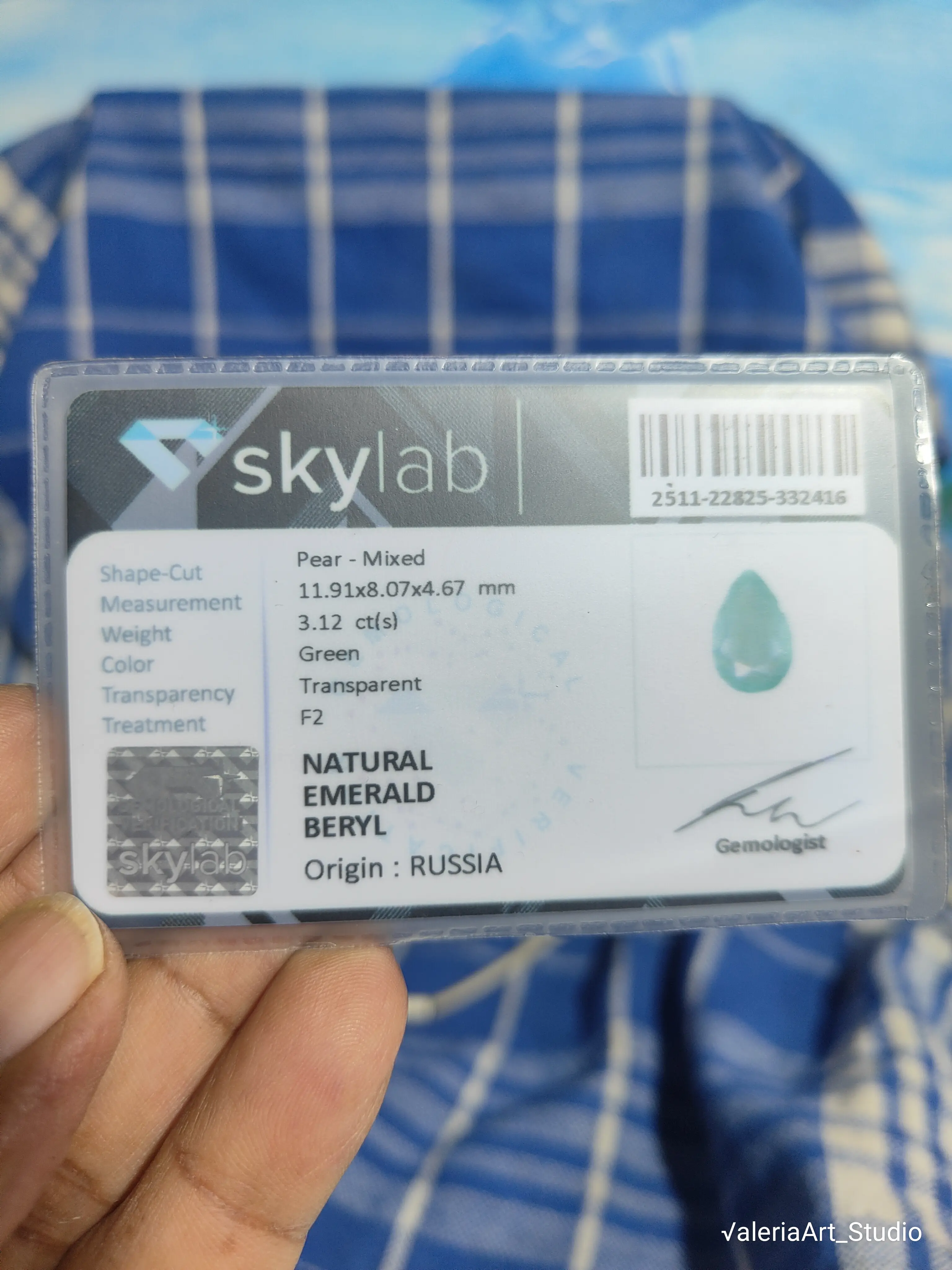Natural Emeral Beryl, Origin : RUSIA, Bluisgreen, 3.12 ct (s)