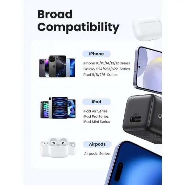 Pengisian Cepat, Ke Semua iPhone: Dengan chip GaN canggih, pengisi daya USB C ini memadukan desain ringkas dan kinerja bertenaga. Sempurna untuk iPhone Anda – dengan daya pengisian cepat 38 W, pengisi daya iPhone ini dapat mengisi daya iPhone 16 Anda hanya dalam 30 menit. biaya dari 0% hingga 60%. Ini 3X lebih cepat dari biasanya