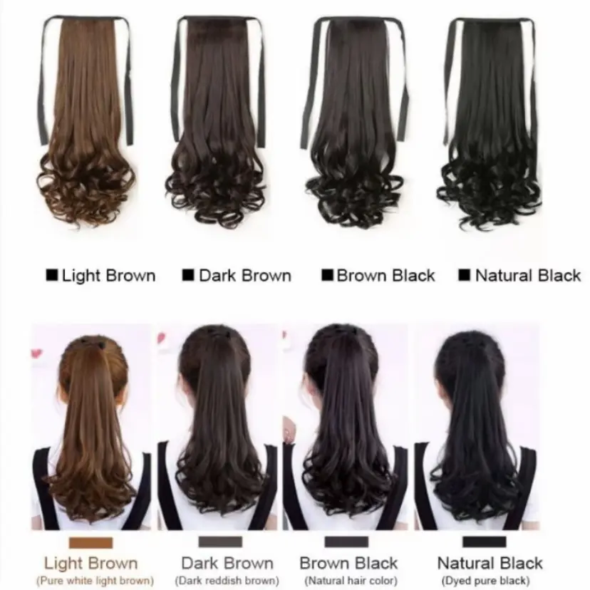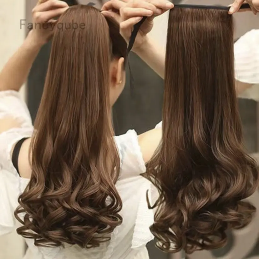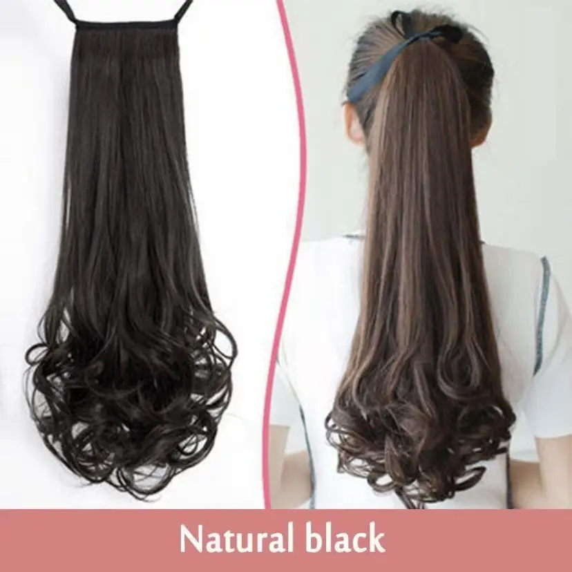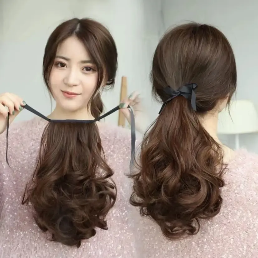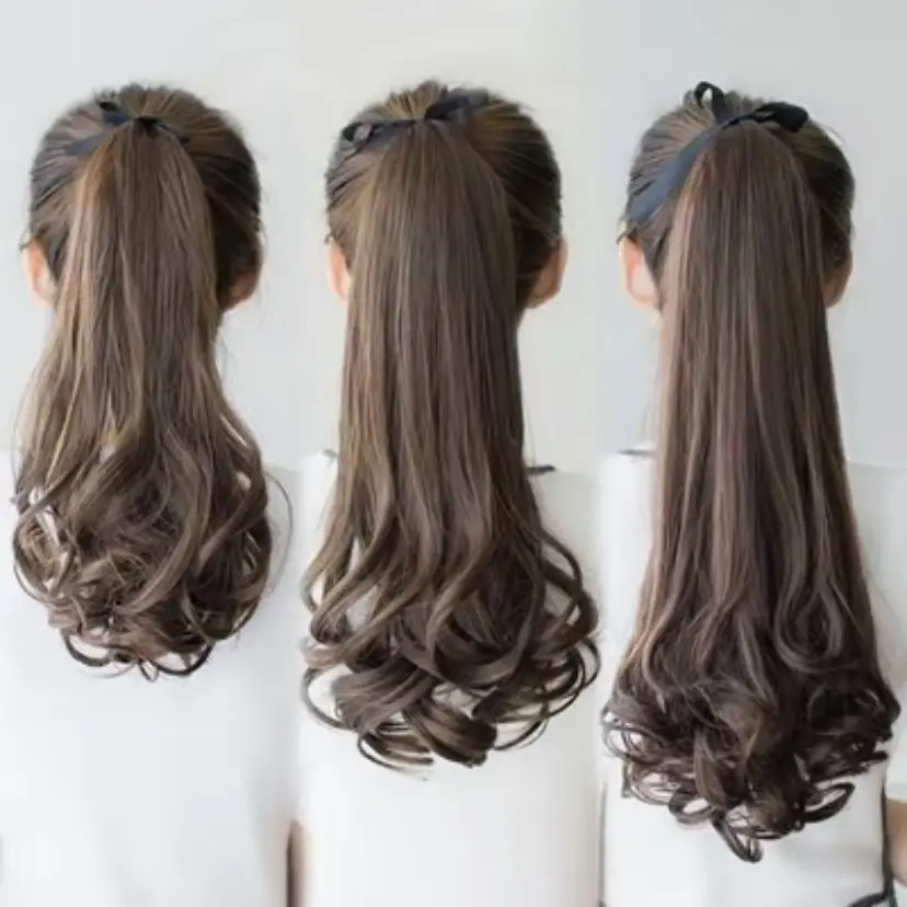Jepit Rambut Poni Keriting Panjangl Ekstensi Rambut Sintetis untuk Wanita 35cmPonytai Keriting Panjang vepit,Ekstensi Rambut Sintetis Wanita
