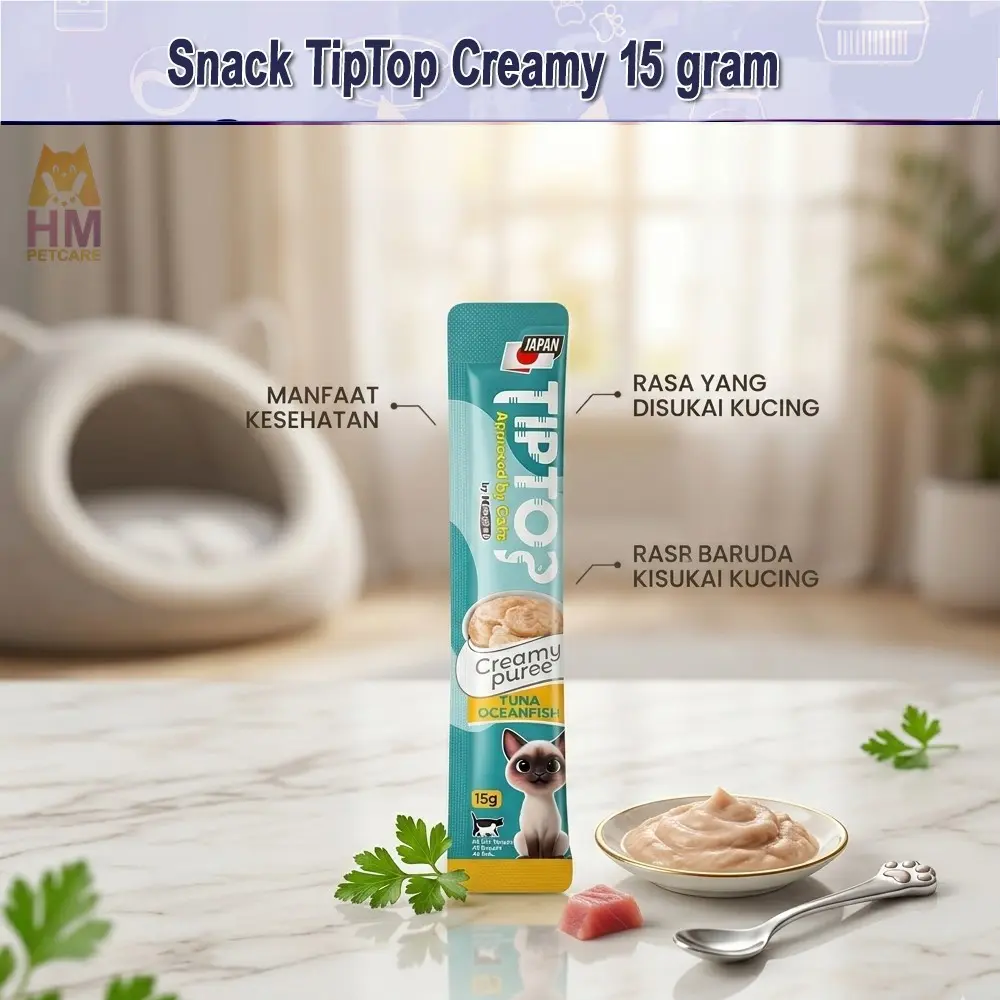 5. Cemilan Snack Kucing TipTop Creamy 15 gram | Tip Top Wet Food Cat Creamy 15gram
