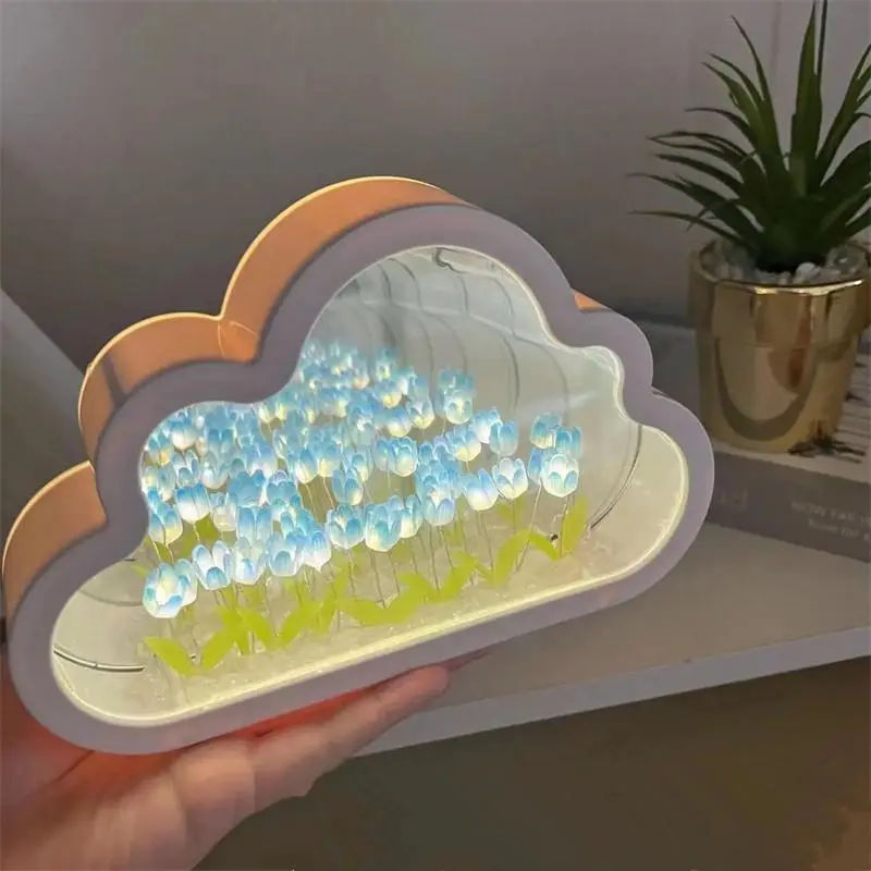 Duffy Toys Lampu Cermin Tulip DIY LED Handmade Bunga Tulip Lampu Awan / Hadiah Untuk Pacar Sahabat