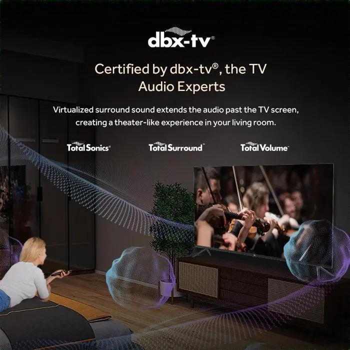 Bingkai tipis pada unit TV ini memungkinkan Anda untuk menonton tayangan di TV tanpa gangguan. "