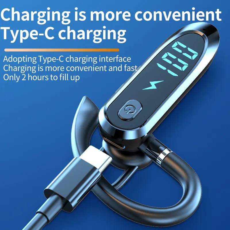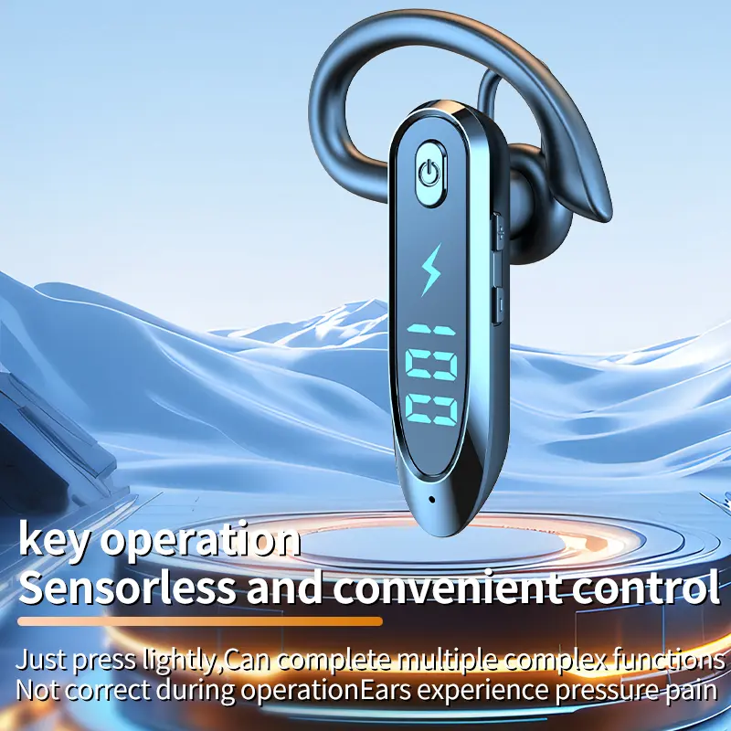 Headset Telinga Tunggal dengan Mikrofon Bluetooth 6.0 Earphone Peredam Kebisingan Speaker Mini Tahan Air Tampilan LED Bebas Genggam Waktu Siaga Panjang