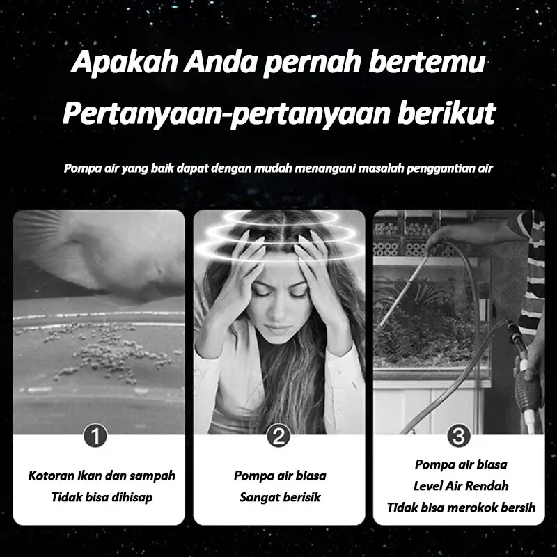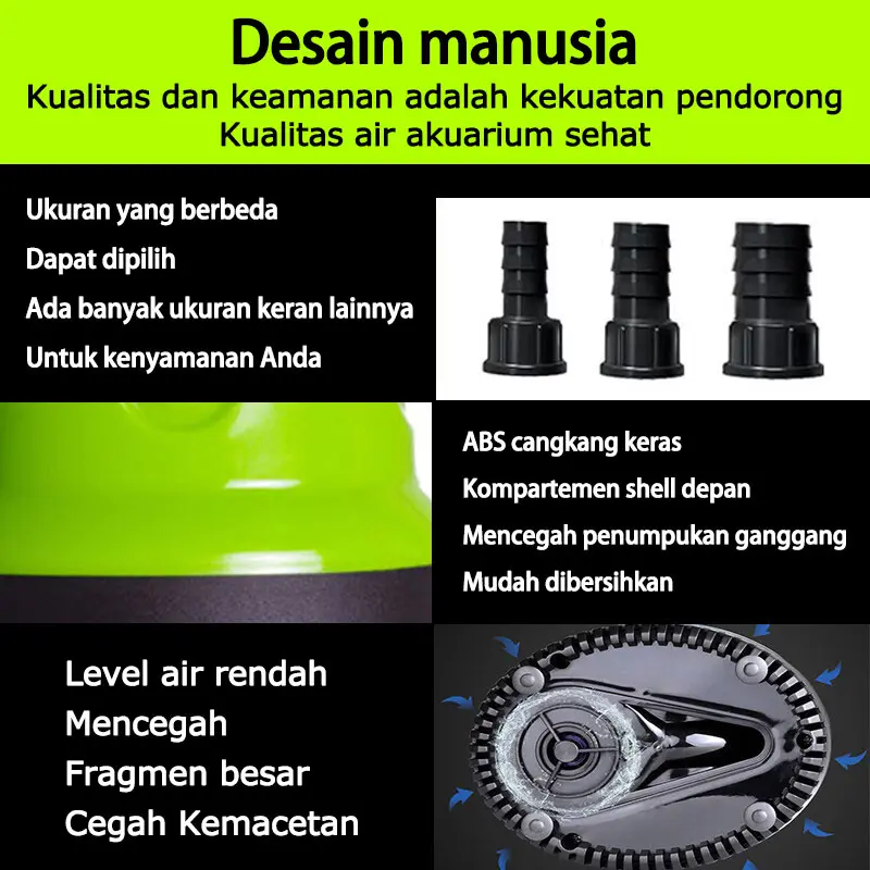 ● ✅ Bagian bawah pompa tersedot ke dalam air di sekitarnya, yang membantu membersihkan tangki kotoran ikan dan puing-puing secara efektif.