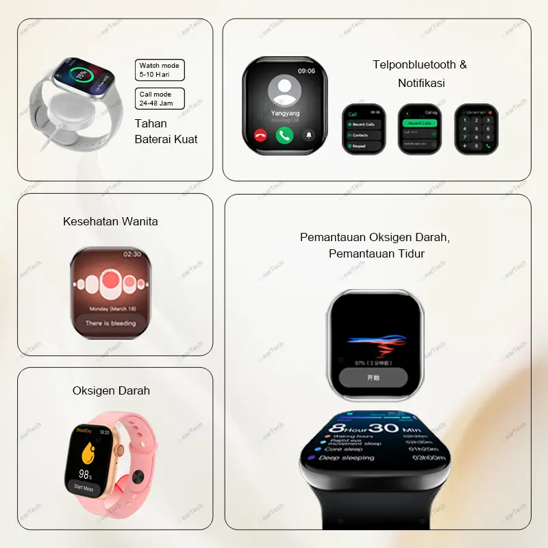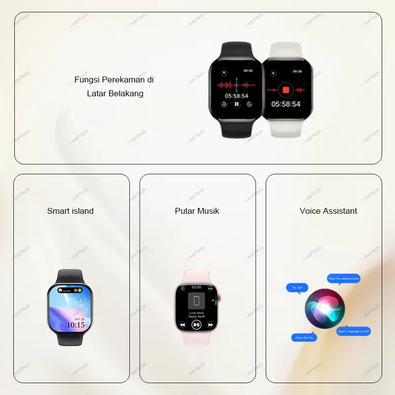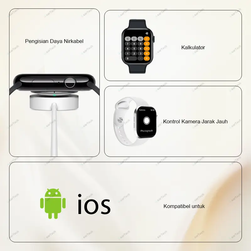 Kami juga memahami pentingnya ketahanan air, oleh karena itu Mart Watch 11 Pro Max Max memiliki tingkat Waterproof (Anti Air) yang handal. Anda tidak perlu khawatir saat terkena hujan, berkeringat saat berolahraga, atau mencuci tangan. Proses pengisian daya semakin dimudahkan dengan fitur Wireless Charging, Anda hanya perlu meletakkan jam pada charger nirkabel yang kompatibel, dan pengisian daya akan berjalan otomatis tanpa ribet kabel yang berantakan. Desain jam ini Unisex, cocok untuk pria dan wanita dengan gaya yang stylish dan elegan, sehingga cocok untuk dipakai dalam berbagai kesempatan, dari formal hingga kasual. Sebagai bonus spesial, kami memberikan wallpaper gratis untuk Anda personalisasikan jam tangan sesuai dengan selera dan gaya Anda.