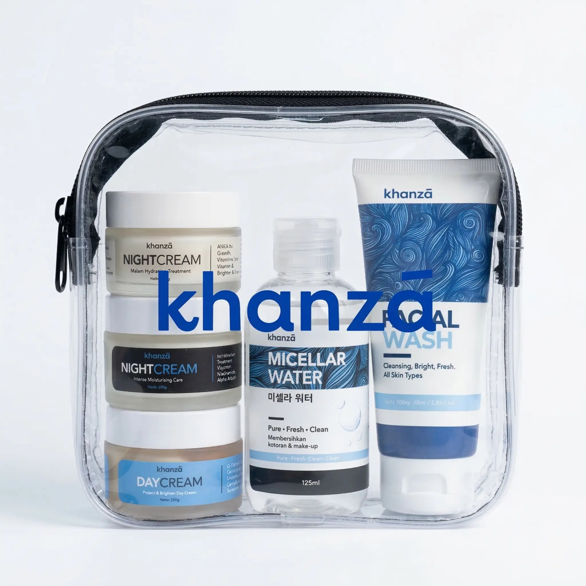 KHANZA SKINCARE 5 in 1 - Paket Skincare Brightening Penghilang Kusam & Bekas Jerawat - Aman BPOM - Day Night Cream Alpha Arbutin AHA BHA Facial Wash Micellar Water