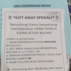 NB:TIDAK MENERIMA REQUEST VIA CHAT JIKA REQUEST TINGGALKAN PESAN DICATATAN KETIKA MELAKUKAN PESANAN!!!