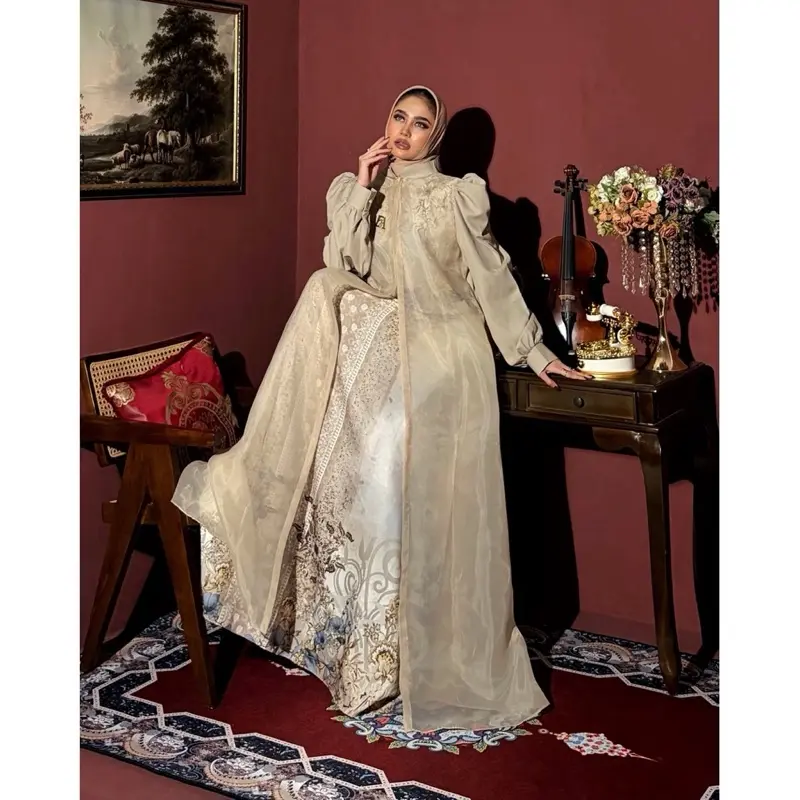 Alhamdilillah setelah menunggu beberapa minggu akhirnya datang juga si camilla ivory. Bahan nya bagus. Organza nya bagus. Jahitan nya rapi. Cuma bagian kancing ke bawah kurang rapi. Lipatan organza nya juga kurang rapi dikit. Tp over all keren. Warna nya cantik. Makasih incess semoga makin sukses..