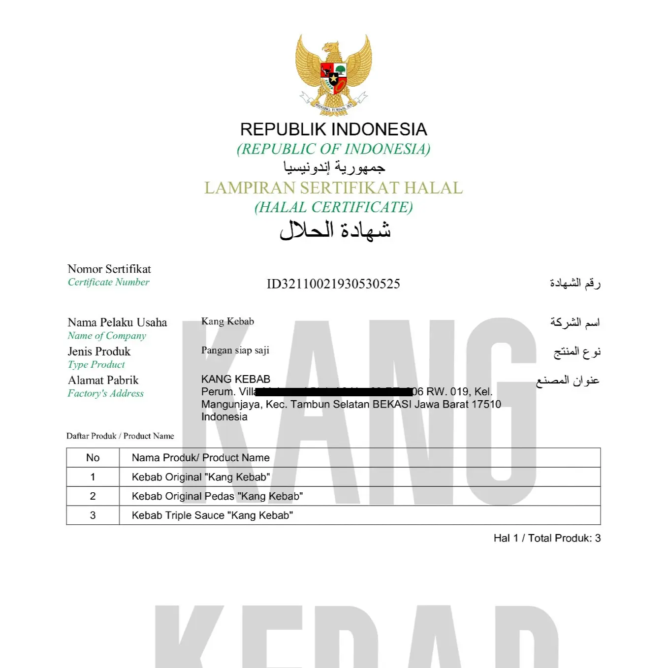 SUDAH TERSERTIFIKASI HALAL PEMERINTAH : ID32110021930530525