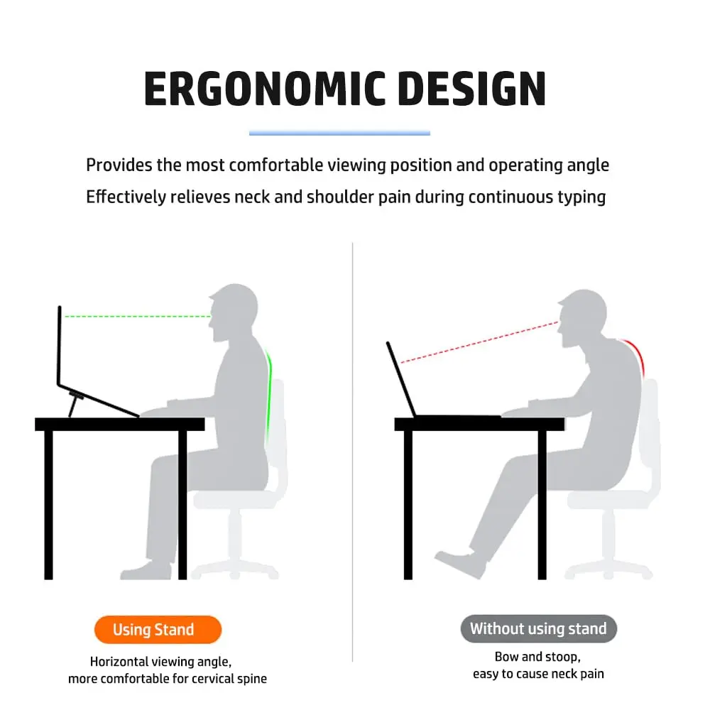 Portabel: Braket ini dipasang di bagian bawah komputer untuk menambah ketinggian komputer dan keyboard, membentuk sudut kemiringan tertentu, sehingga lebih nyaman untuk bekerja. Desain yang dapat ditempel dan dilipat nyaman untuk dibawa dan tidak memakan tempat.