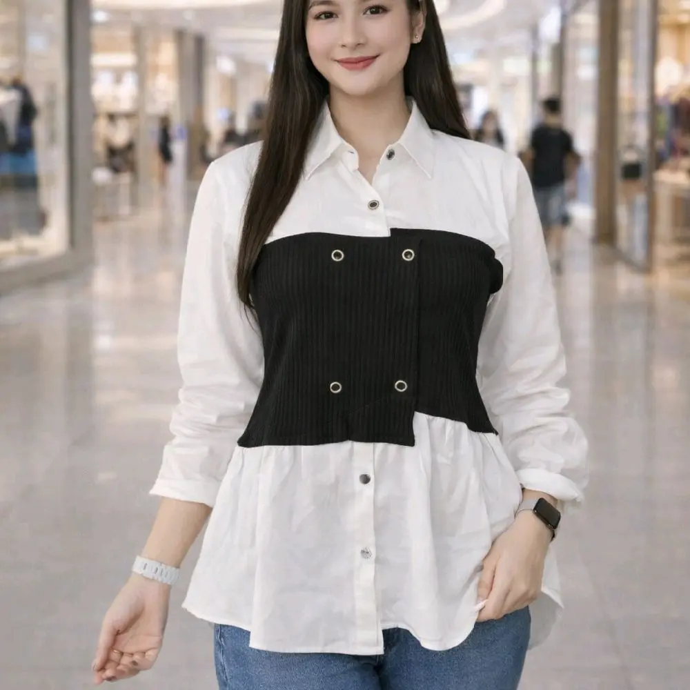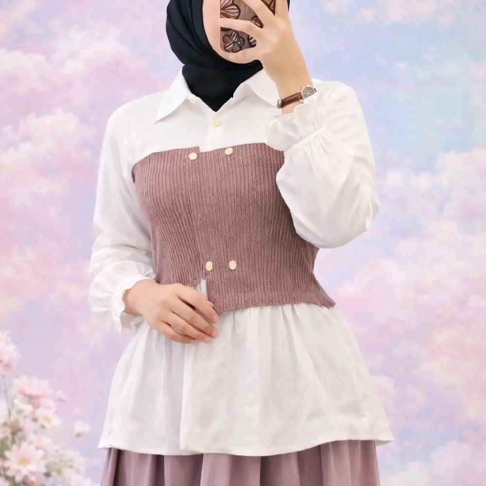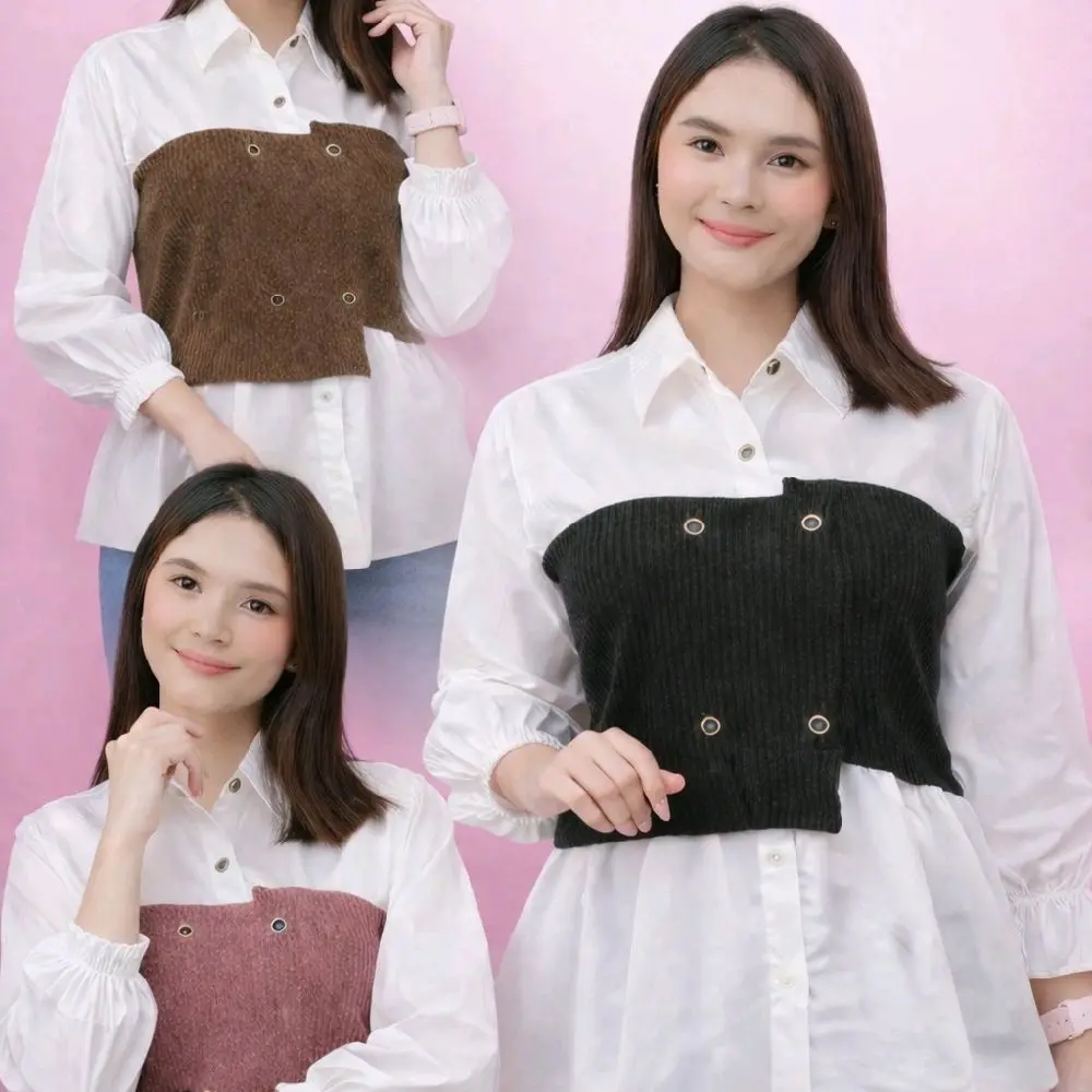 โจ Kemeja Manda Skrit Kenit Kombinasi Rayon Twiil Korean โจ