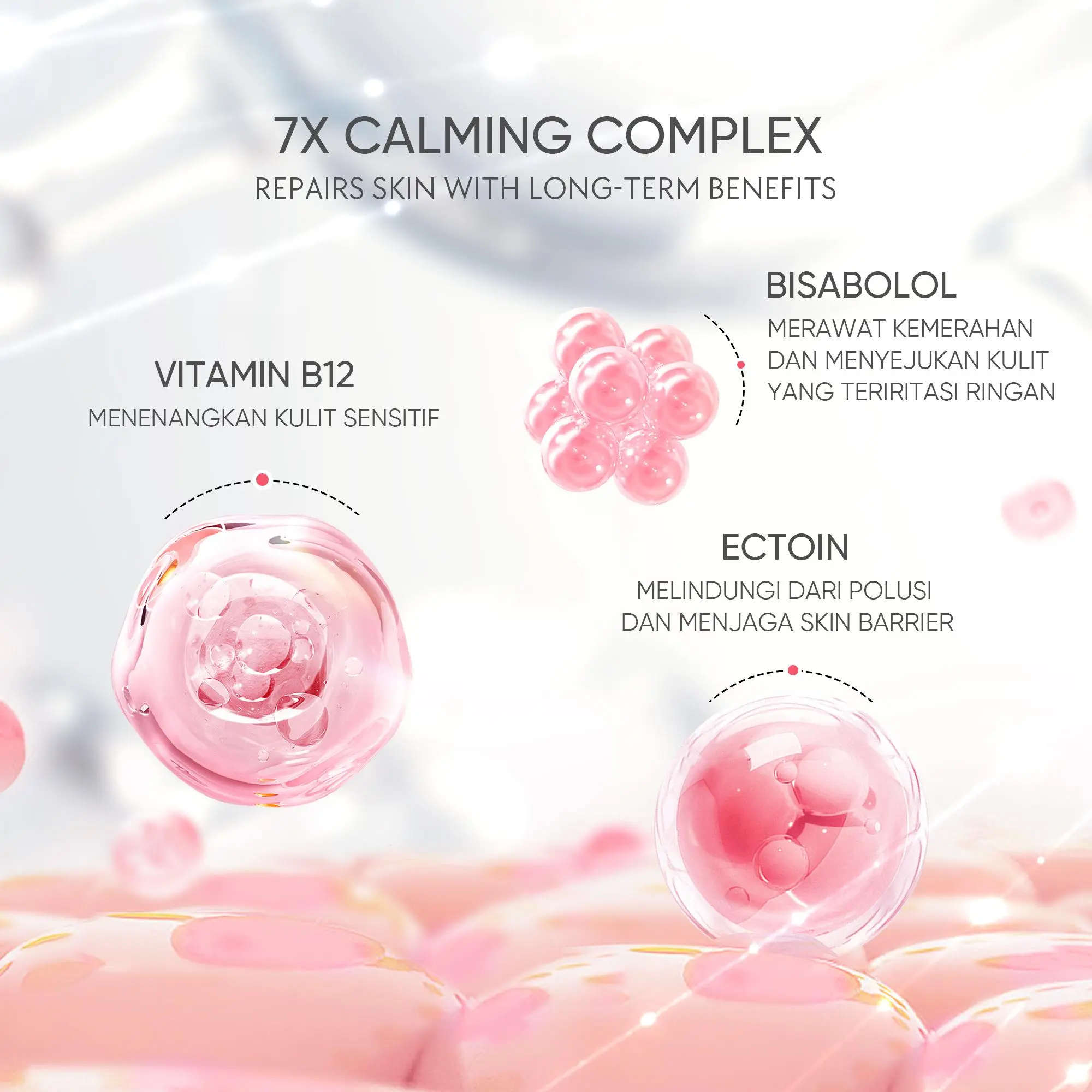 Pelembab untuk kulit sensitif dengan7x Calming Complex(Ectoin, Cyanocobalamin, Lactobacillus/Soymilk Ferment Filtrate, Bisabolol, Ekstrak Portulaca Oleracea, Ceramide NS, dan Ekstrak Centella Asiatica). Berfungsi menenangkan dan merawat kemerahan, serta memiliki warna pink alami dariVitamin B12untuk memperbaiki skin barrier. DenganDual Bionic Technologyyang menggabungkan komposisi simulasi skin lipid danemulsifikasi liquid crystal,produk ini menjaga kelembapan dan memaksimalkan penyerapan bahan aktif. Teksturnya ringan dan cepat meresap, cocok untuk kulit sensitif dan acne-prone, sudah lolos uji dermatologi.