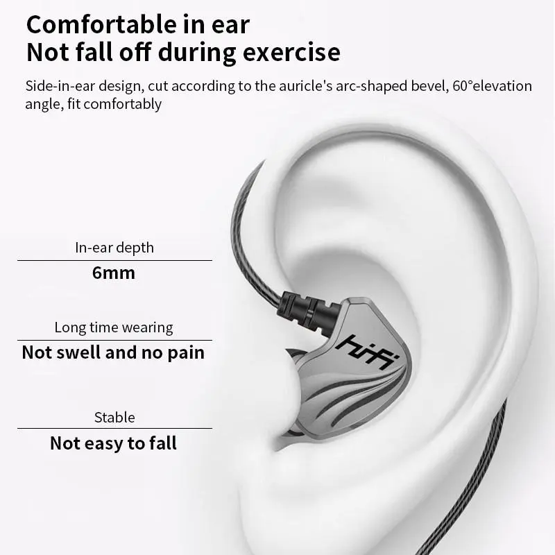 Desain ergonomis dalam telinga, memakai yang kuat tidak mudah melepaskan, memakai untuk waktu yang lama juga nyaman tanpa tekanan.