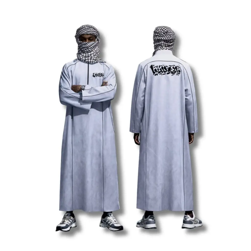 Tampil beda dengan jubah pria modern konsep streetwear muslim.