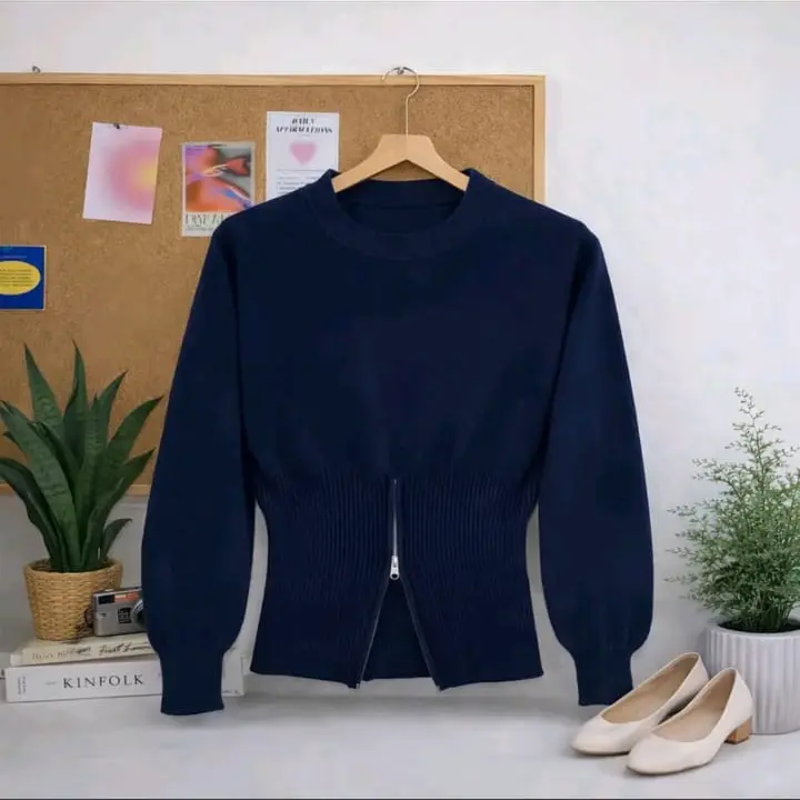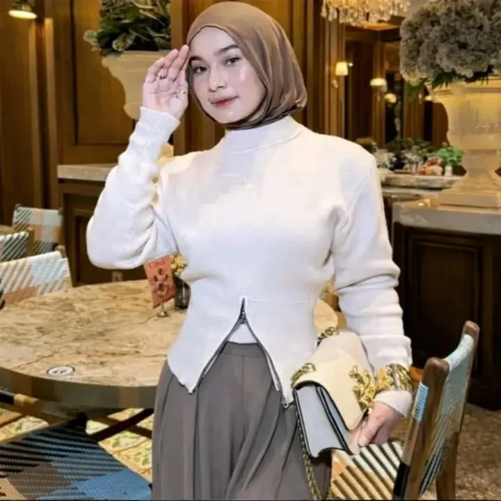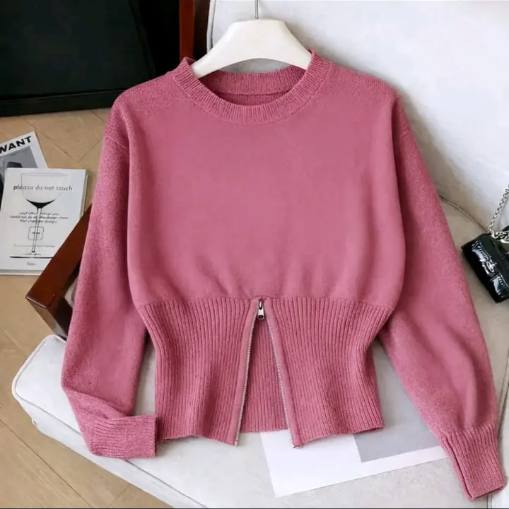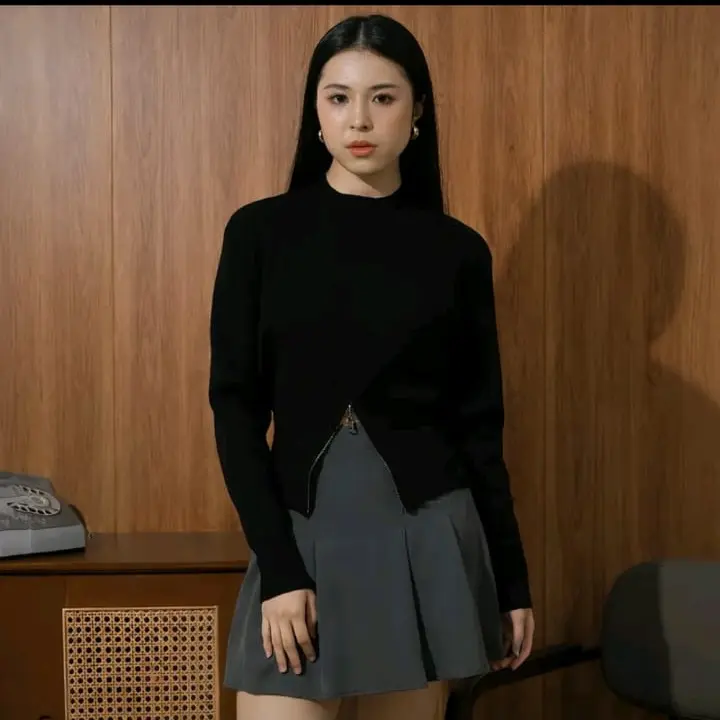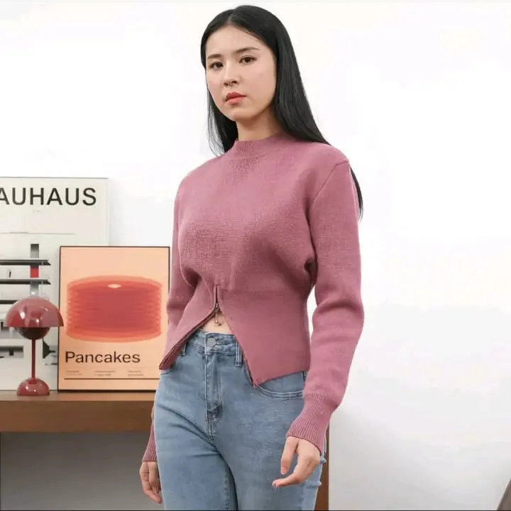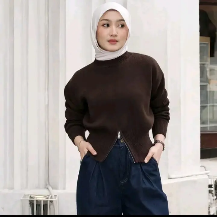 5. TALLA Sweater Rajut Zipper Resleting Bawah Atasan Crop Top Korean Style Zipper Blouse Knit