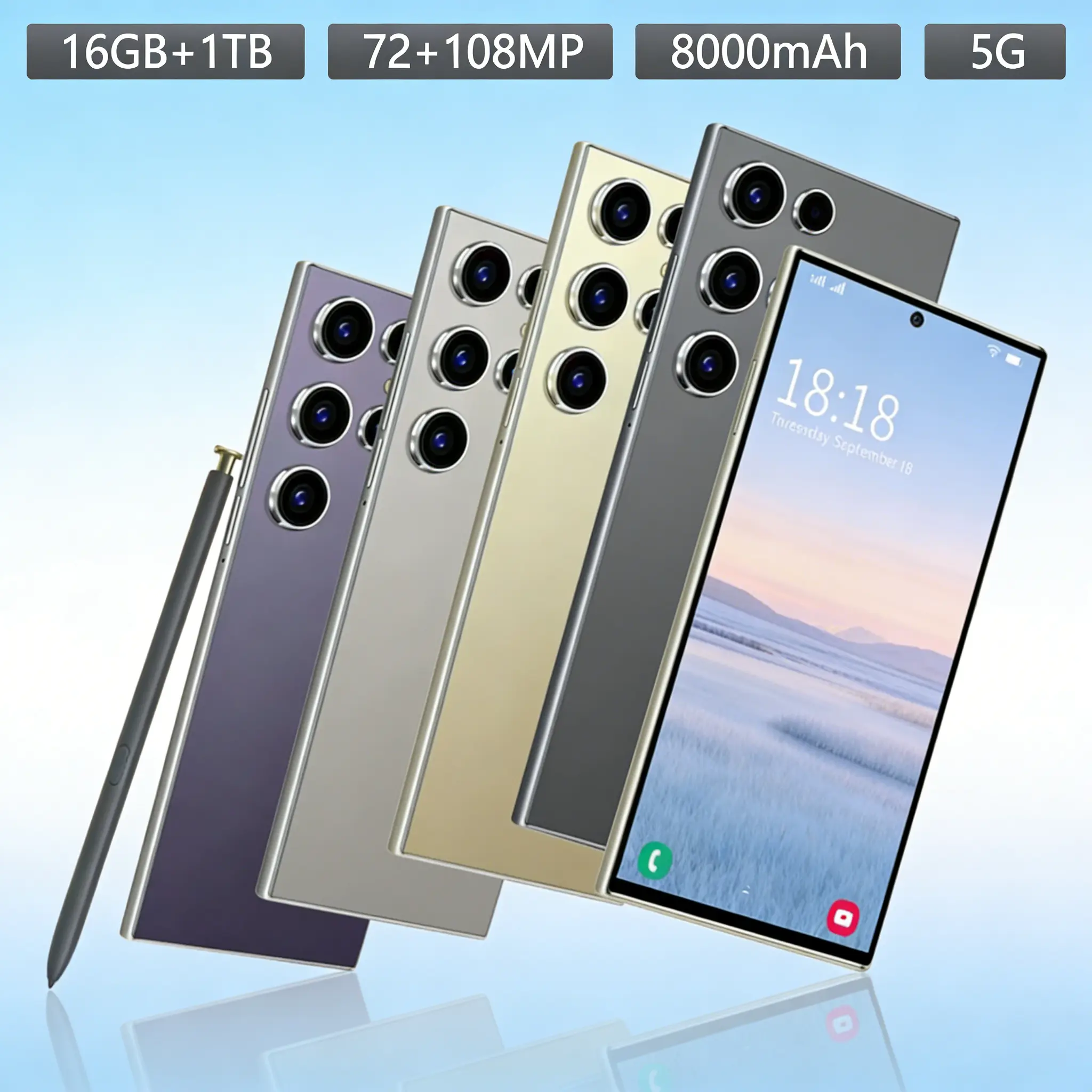 [Ready Kirim] S 25 Ultra Edisi Hitam 7.5Inci 16GB+1TB Android14 Dual SIM 5G 8000mAh 72MP+108MP OIS Smartphone Metal Frame + Free TWS & Case