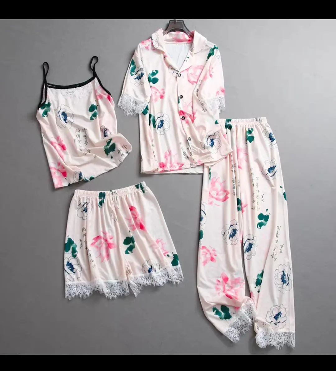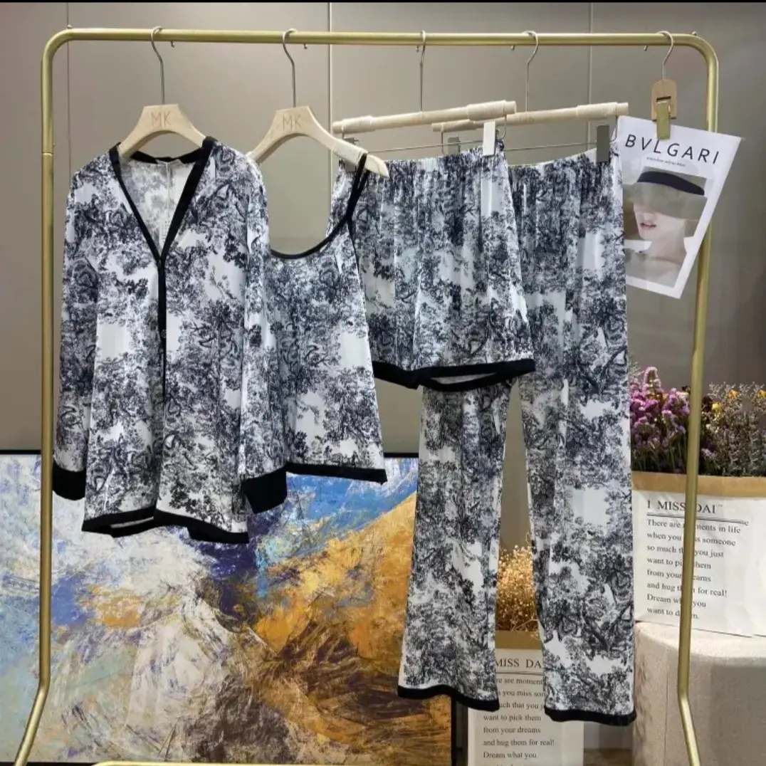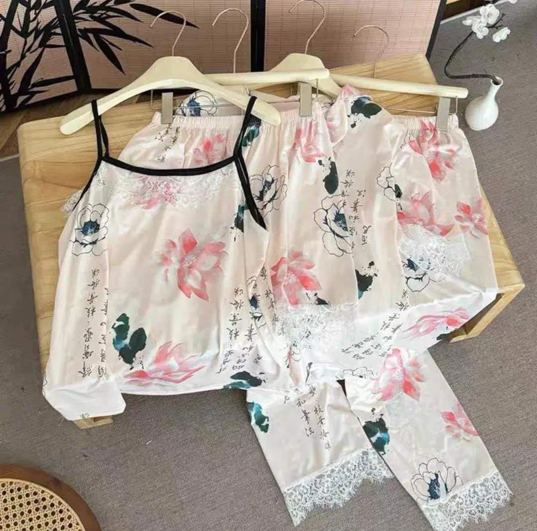 SET PIYAMA WANITA 4IN1 MOTIF BUNGA โ NYAMAN & ELEGAN