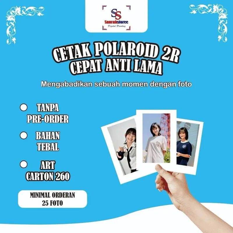 Dari pada menghapus kenangan, lebih baik mengabadikan momen dengan foto kekinian. Cetak Polaroid 2R adalah pilihan tepat untuk mempertahankan kenangan Anda. Minimal order 25 foto.