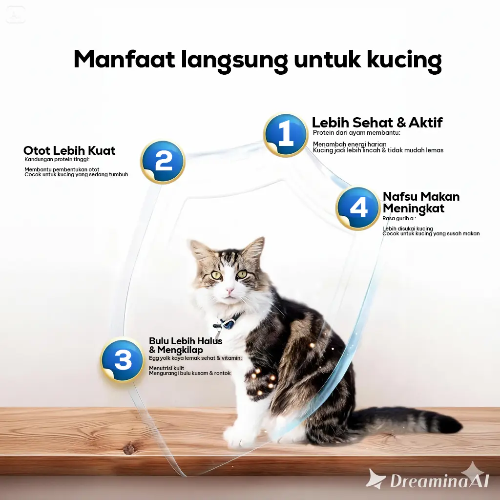 ·Dengan makanan ini, kucing Anda akan mendapatkan nutrisi yang diperlukan. Membantu pertumbuhan dan menjaga kesehatan kucing secara keseluruhan.
