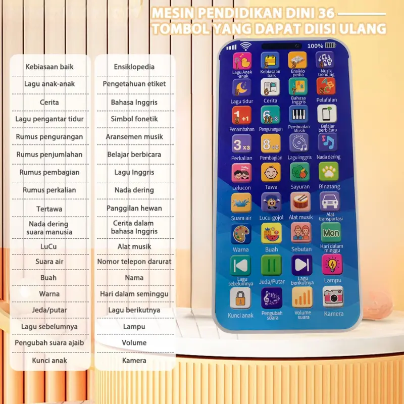 1.Nama Produk: Ponsel Mainan 36 Tombol - Versi Bahasa Indonesia