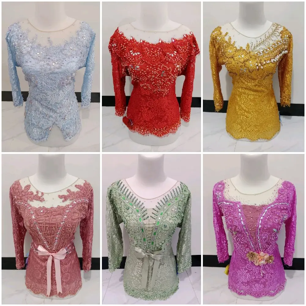 Kebaya pendek ini terbuat dari bahan semi Prancis Bahan ini sudah berlapis, memberikan tampilan yang lebih rapi dan menarik
