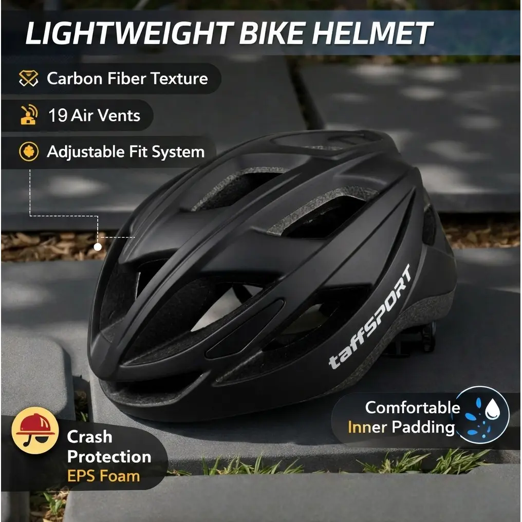 Helm sepeda TaffSPORT dibuat ringan yang membuat penggunaannya tetap nyaman meski digunakan untuk jangka waktu lama tanpa menimbulkan rasa lelah pada leher atau kepala. Dilengkapi strap sehingga Anda bisa mengatur kelonggaran helm sesuai dengan ukuran kepala Anda. Ini memastikan helm selalu pas, aman, dan nyaman, tanpa merasa terlalu longgar atau terlalu ketat.
