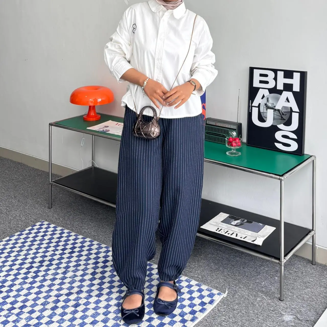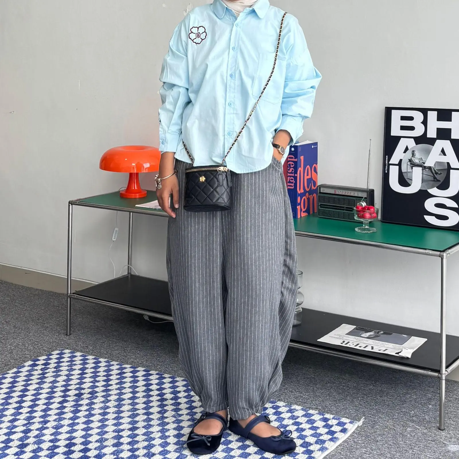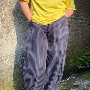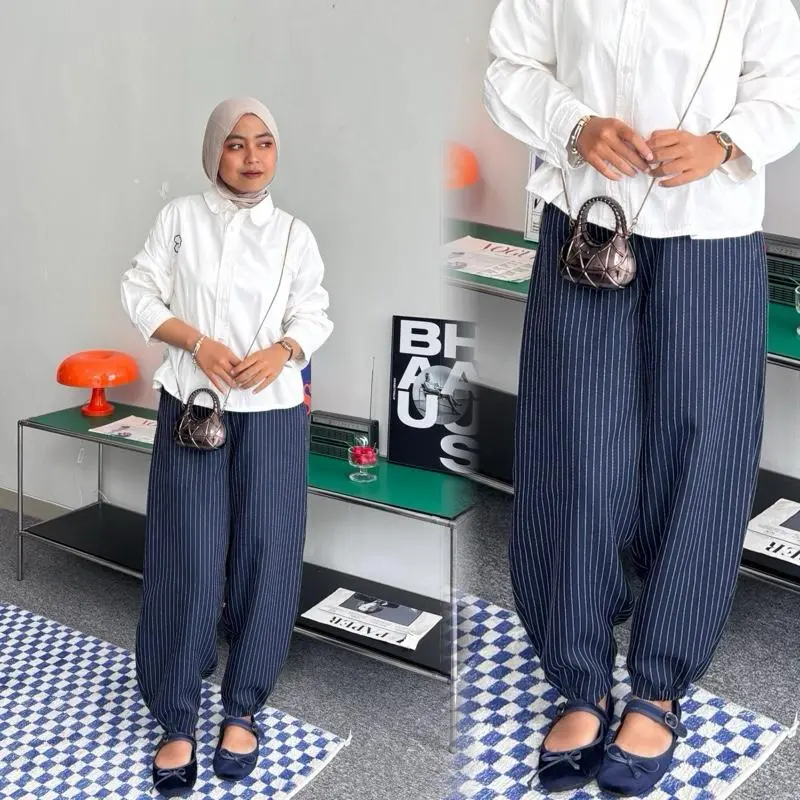 Celana wanita motif salur ini menampilkan gaya streetwear yang unik. Perpauan antara motif salur dengan pola cuttingan barrel membuat celana ini cocok untuk acara santai, celana ini memberikan tampilan vintage yang nyaman. Desain high waist menambahkan kesan modern. Cocok untuk wanita yang mencari celana longgar dan nyaman.