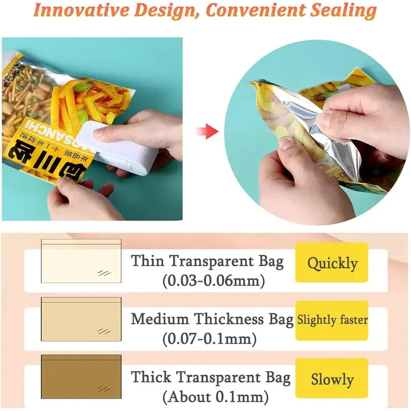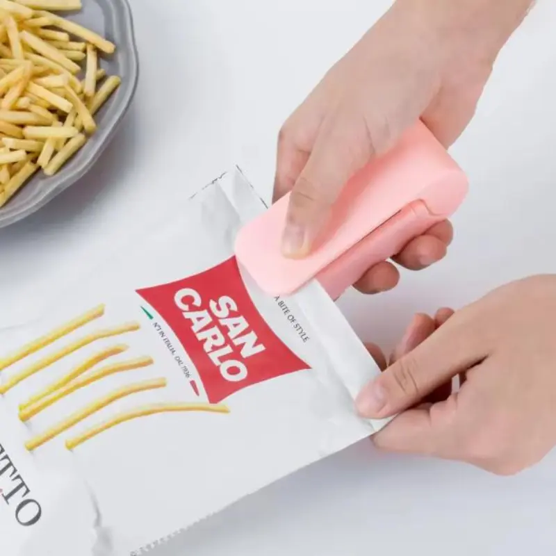 1pc Kitchen Handheld Snack Sealer, Plastic Bag Sealer For Freshness, Easy-To-Use Kitchen Gadge,Portable Sealer Packaging - Pink G135B