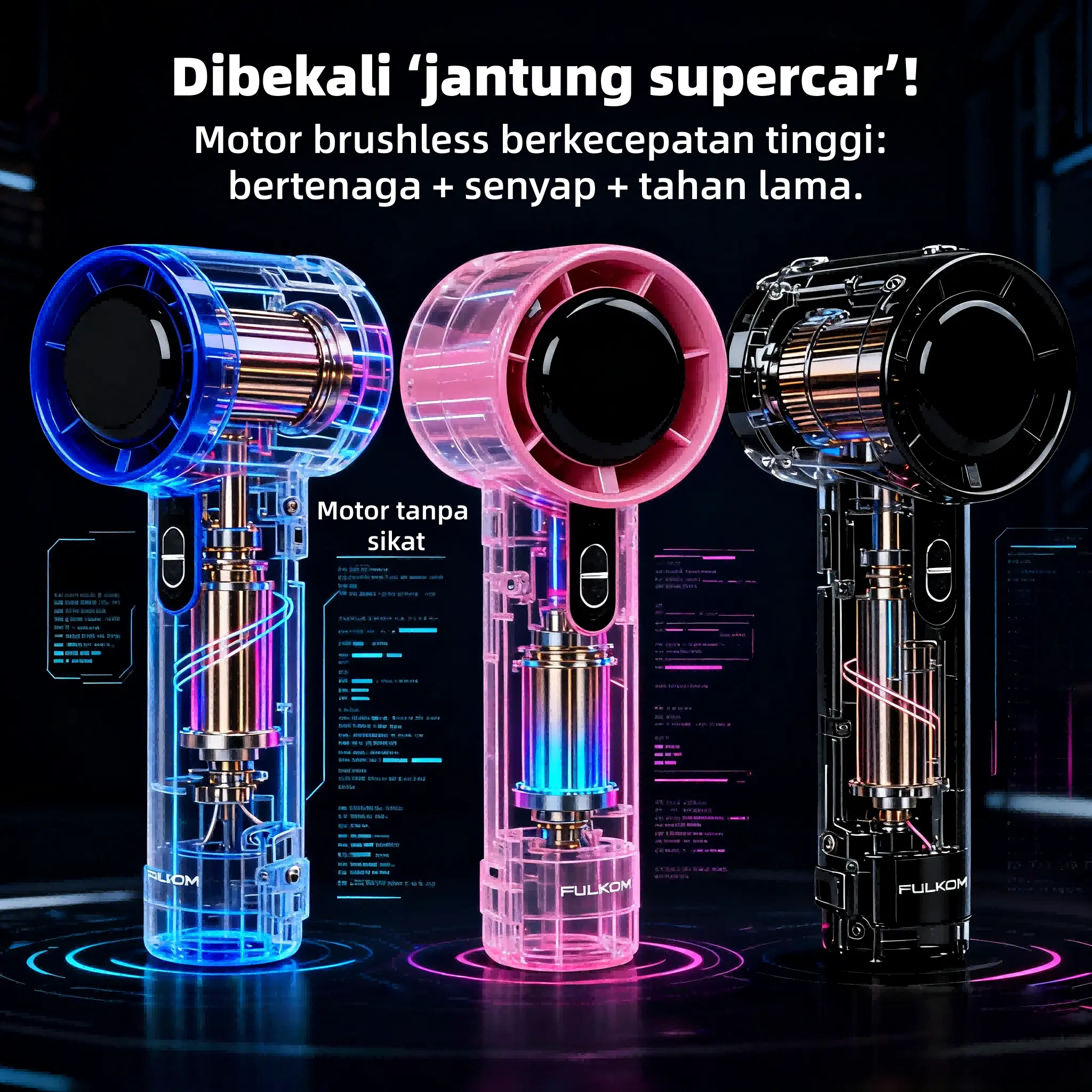 Jangan tertipu dengan ukurannya yang hanya seukuran ponsel! FULKOM Mini Turbo Fan dibekali motor berkecepatan tinggi yang sanggup memberikan hembusan angin kuat seketika. Dengan desain premium dan fitur keamanan lengkap, kipas ini adalah teman setia perjalanan Anda.