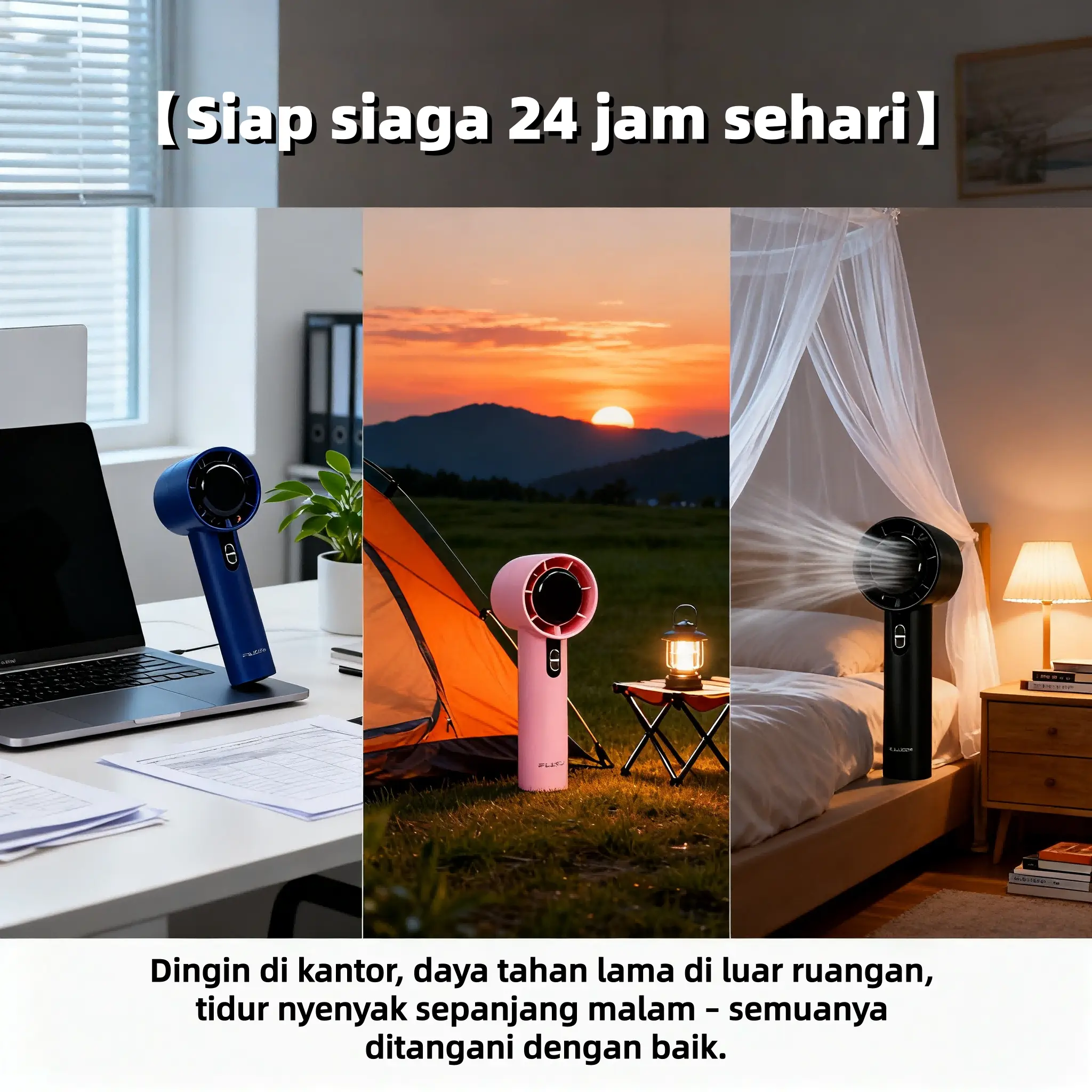 ⢠Layar Digital LED Pintar: Pantau indikator kecepatan angin dan sisa baterai secara real-time. Anda tidak perlu khawatir kipas mati tiba-tiba di saat cuaca sedang panas.