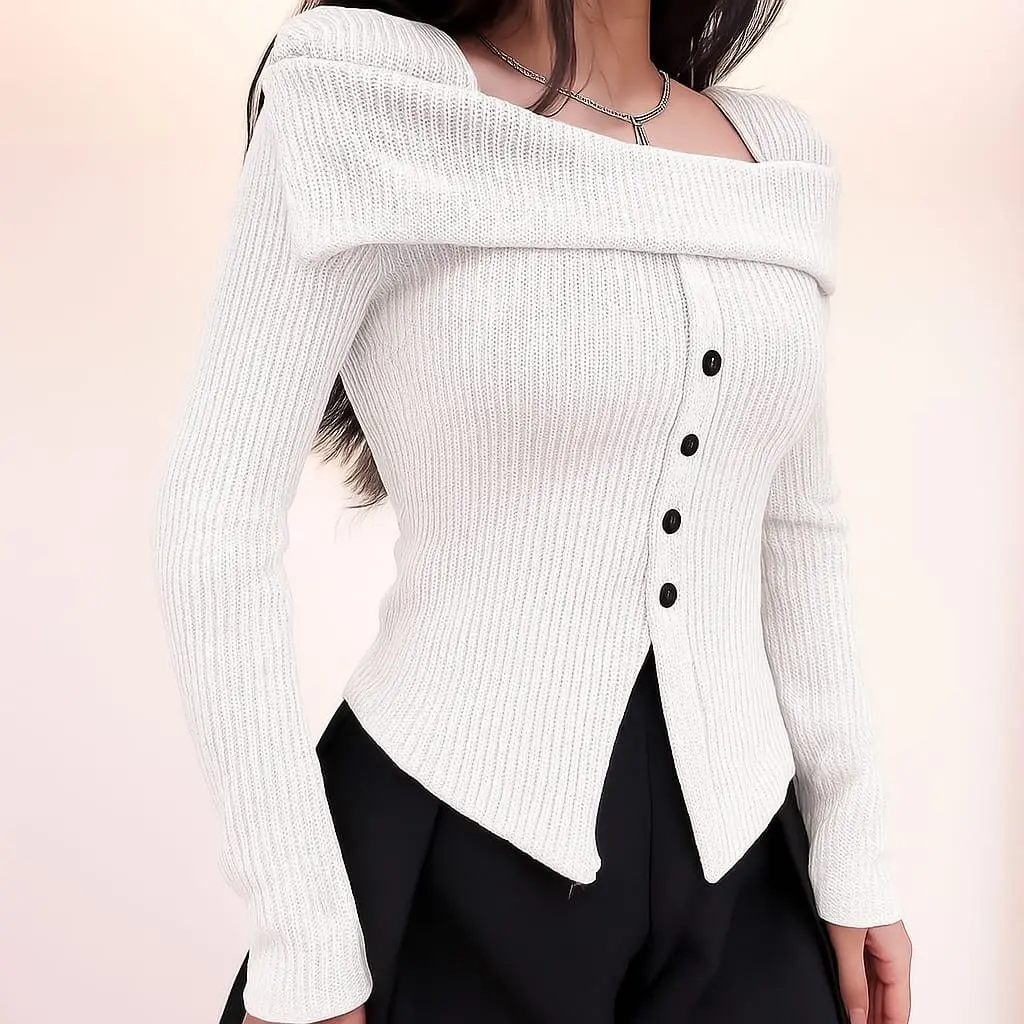 Sabrina Top Kancing Elegan Atasan Polos Knite Rib Panjang