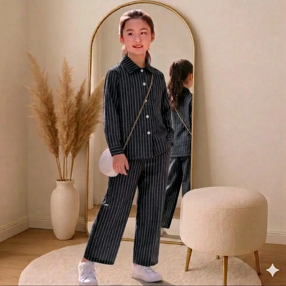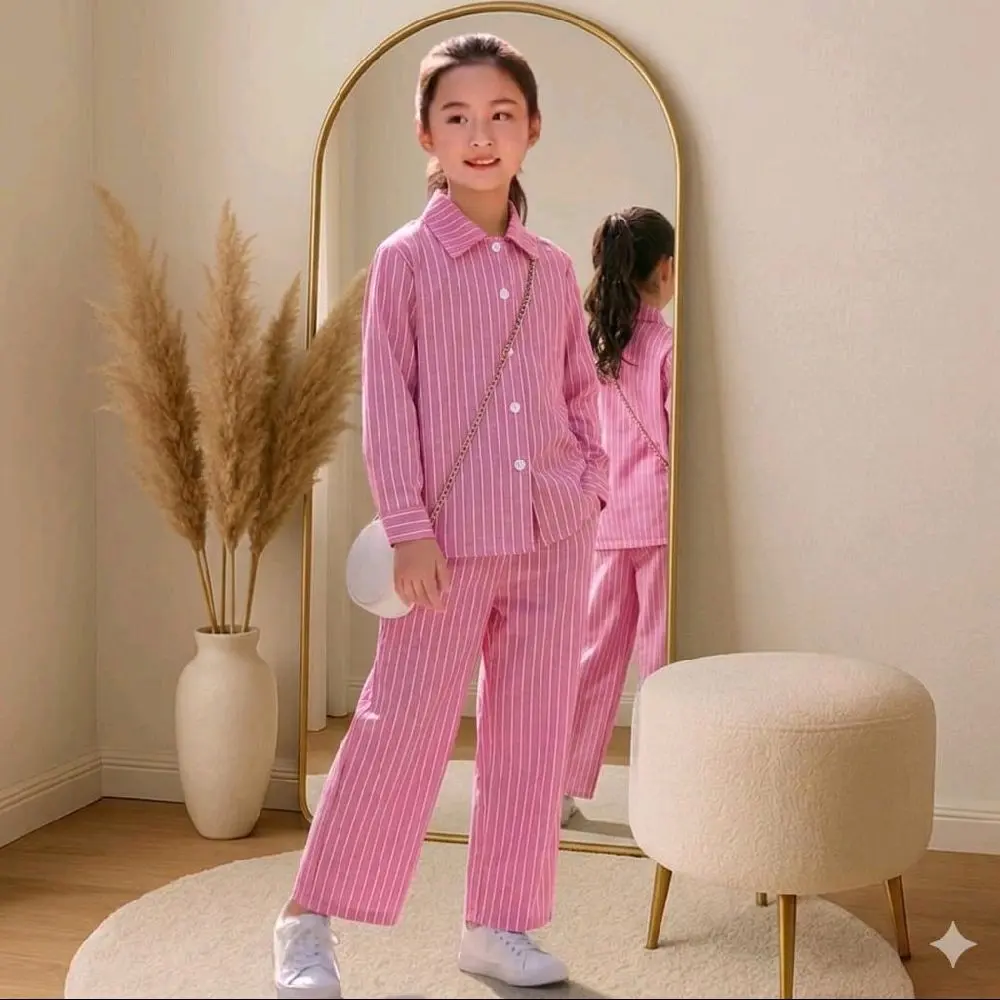 SETELAN ANAK PEREMPUAN MOTIF KEMEJA SALUR CELANA KULOT 1- 12 TAHUN