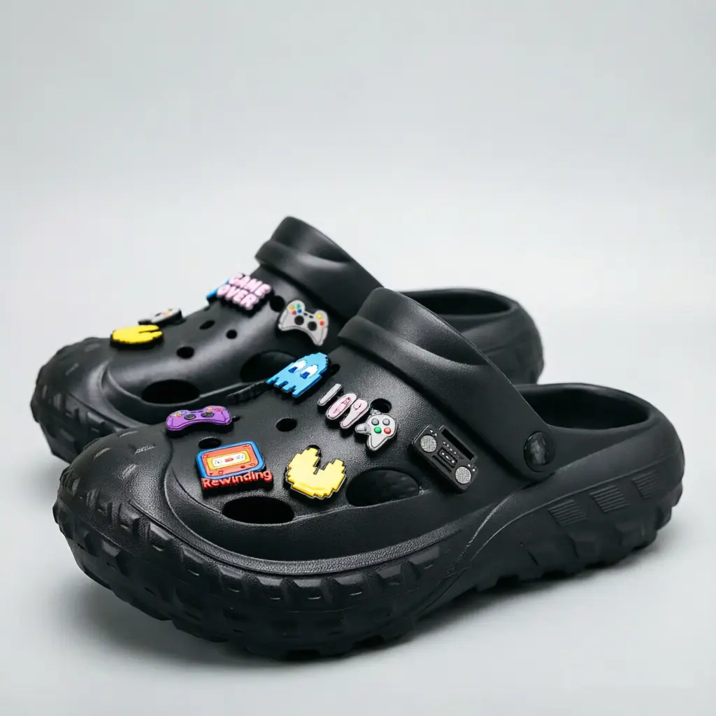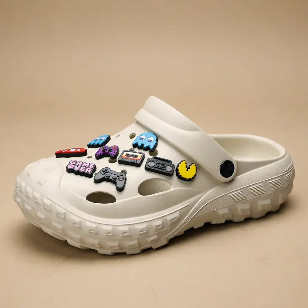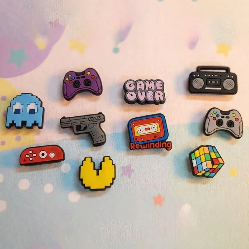Hiasi sepatu clog favoritmu dengan set aksesori bertema retro gaming ini! Cocok banget buat kamu yang suka main game atau pengen tampil beda dengan sentuhan nostalgia.