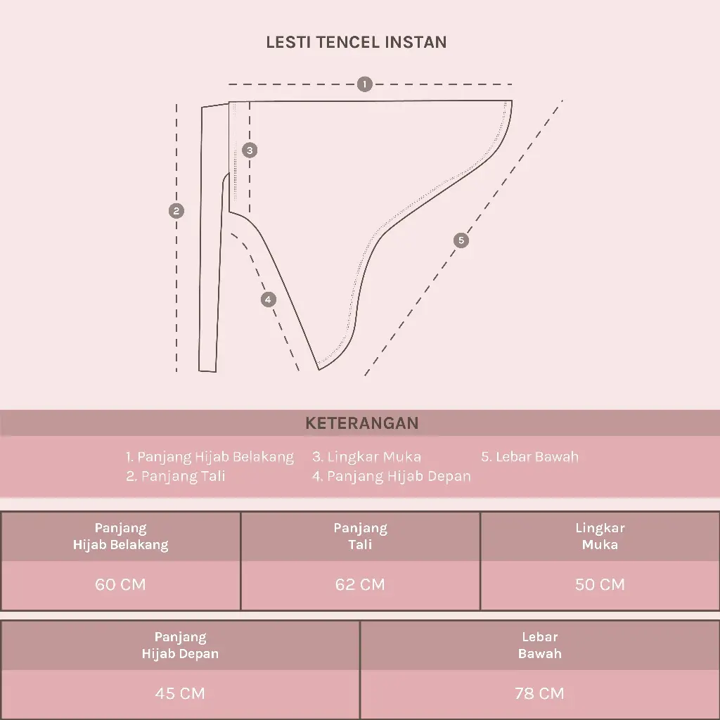 Lesti TENCEL™ Instan Lozy x Lesti merupakan hijab instan bandana terbaru kolaborasi Lozy x Lesti Kejora. Berbahan TENCEL™ Modal fibers yang nyaman, sejuk dan eco-friendly. Hijab ini memiliki panjang belakang cukup menutup bagian punggung, serta panjang depan yang ideal dan tetap praktis tanpa terasa terlalu panjang di bagian dada. Dilengkapi tali bandana yang memudahkan pengaturan agar hijab lebih pas dan stabil saat dipakai. Area lingkar muka dibuat nyaman mengikuti bentuk wajah tanpa terasa sempit. Lesti Tencel Instan cocok digunakan sehari-hari karena praktis, nyaman, dan tetap memberikan siluet yang rapi serta elegan.