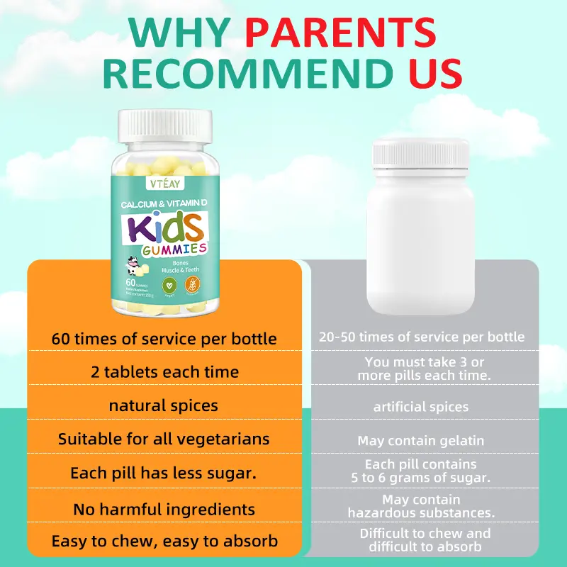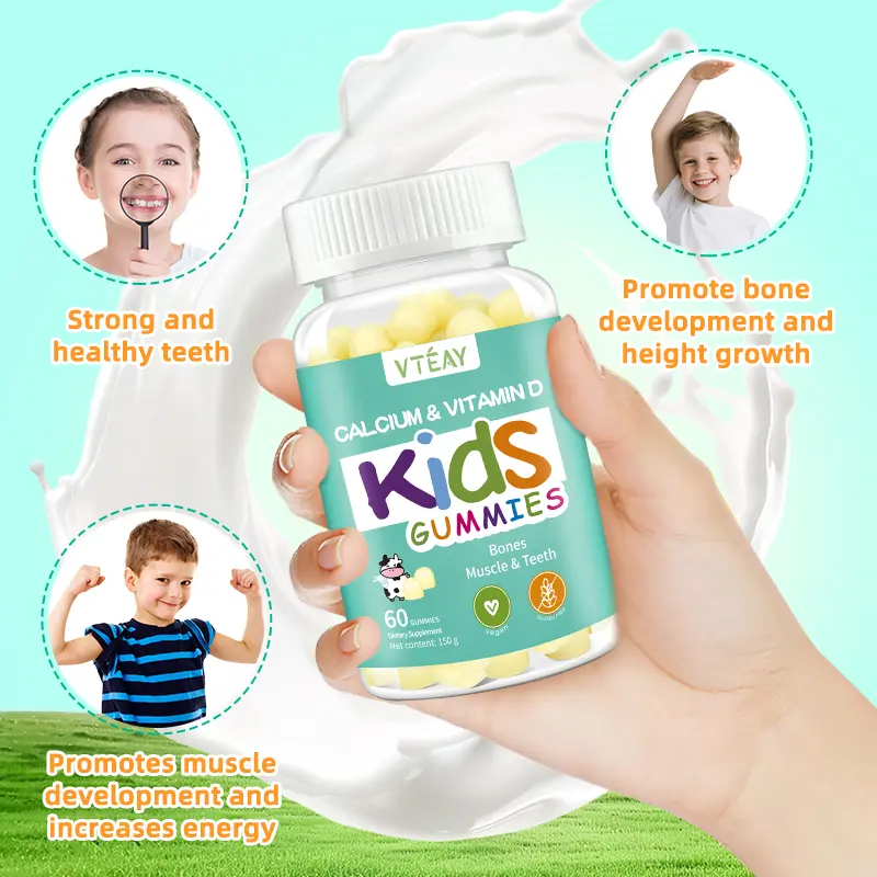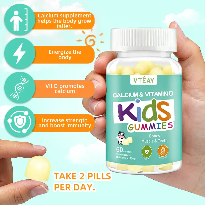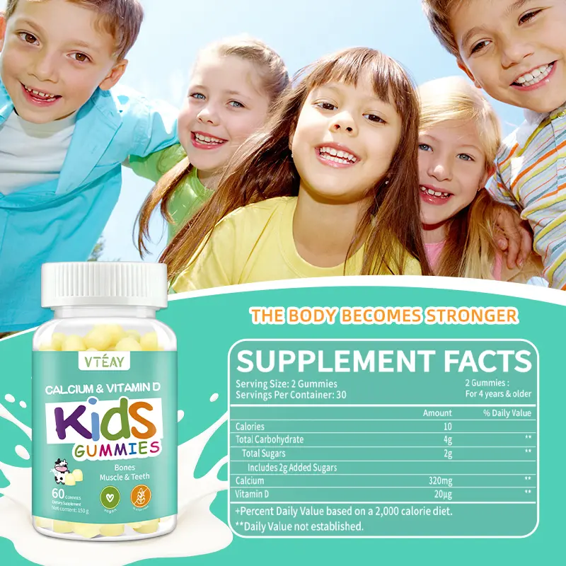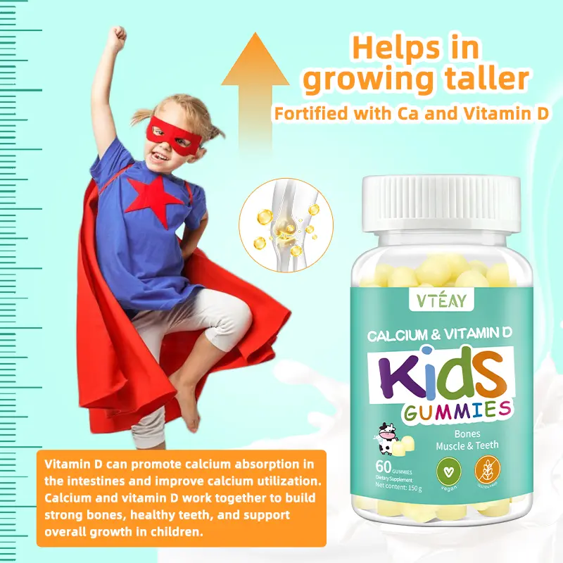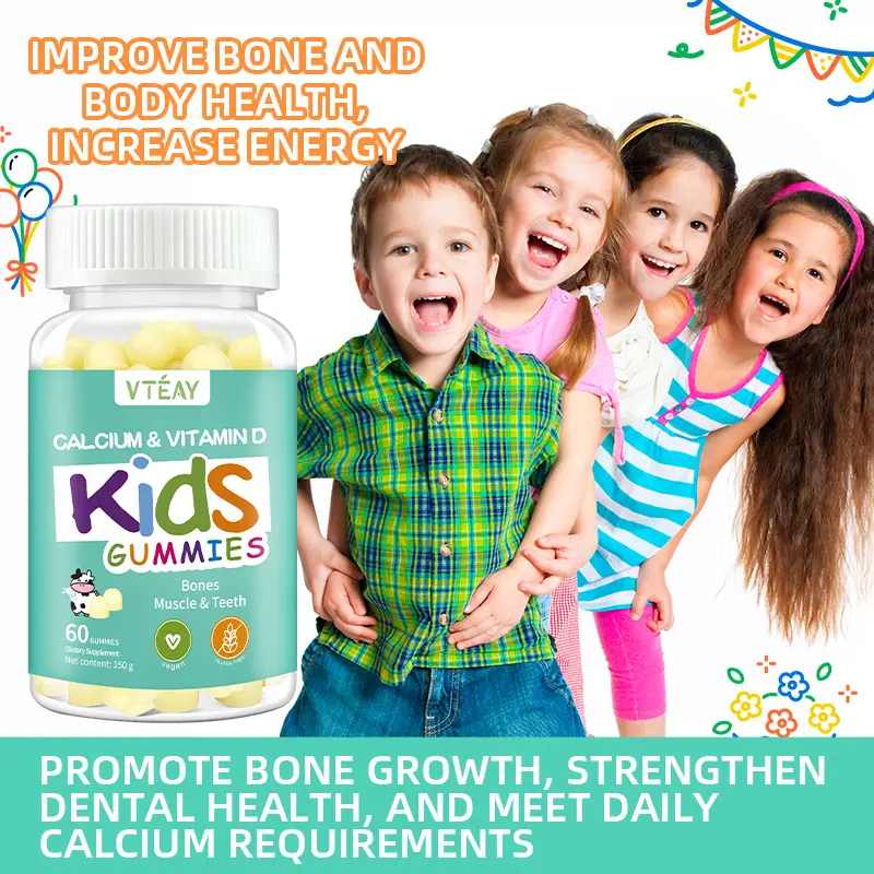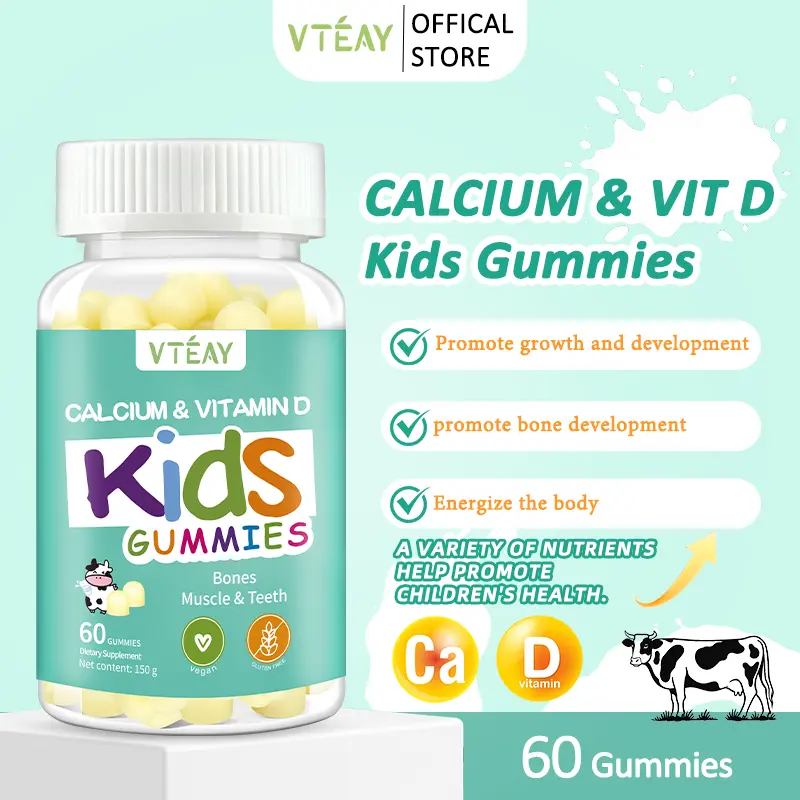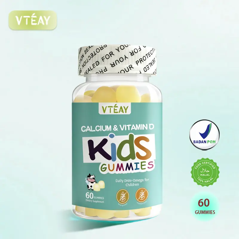 VTEAY Kids Gummies Kalsium + Vitamin D | Menjaga Kesehatan Tulang & Gigi Anak | Formula Rendah Gula | Isi 60 Butir