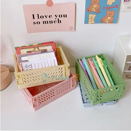 - Organizer box ini bisa dilipat saat tidak digunakan, dan sangat membantu untuk merapikan barang-barang kecil yang di meja belajar kita loh, seperti washi tape, cutter, buku memo, sticky notes, dll