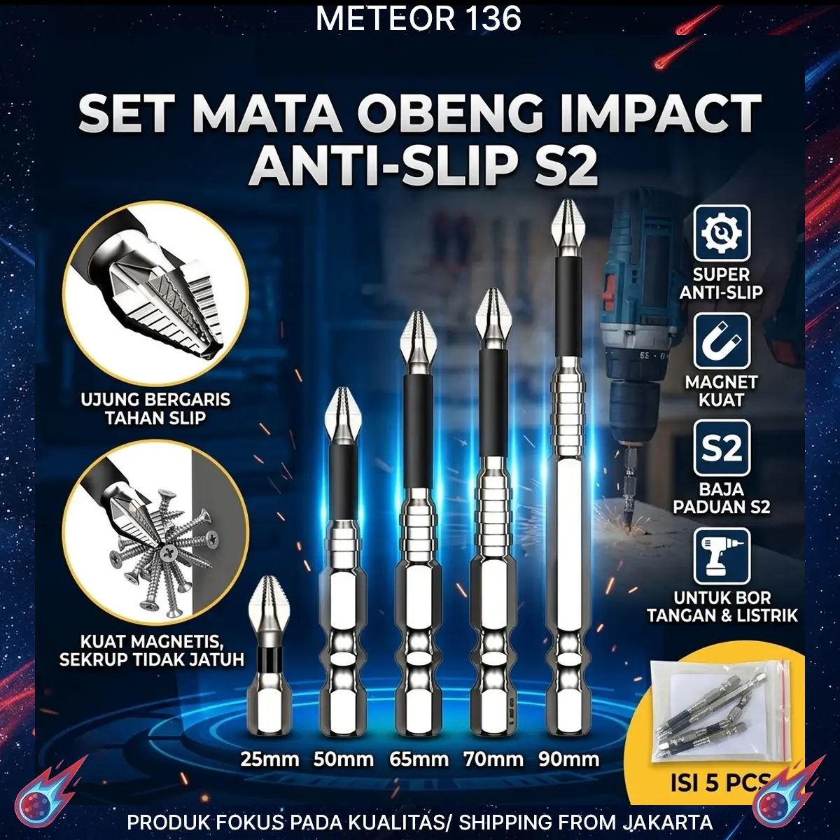 ·🔹 Nama Produk: Set Mata Bor / Mata Obeng Antiselip K5