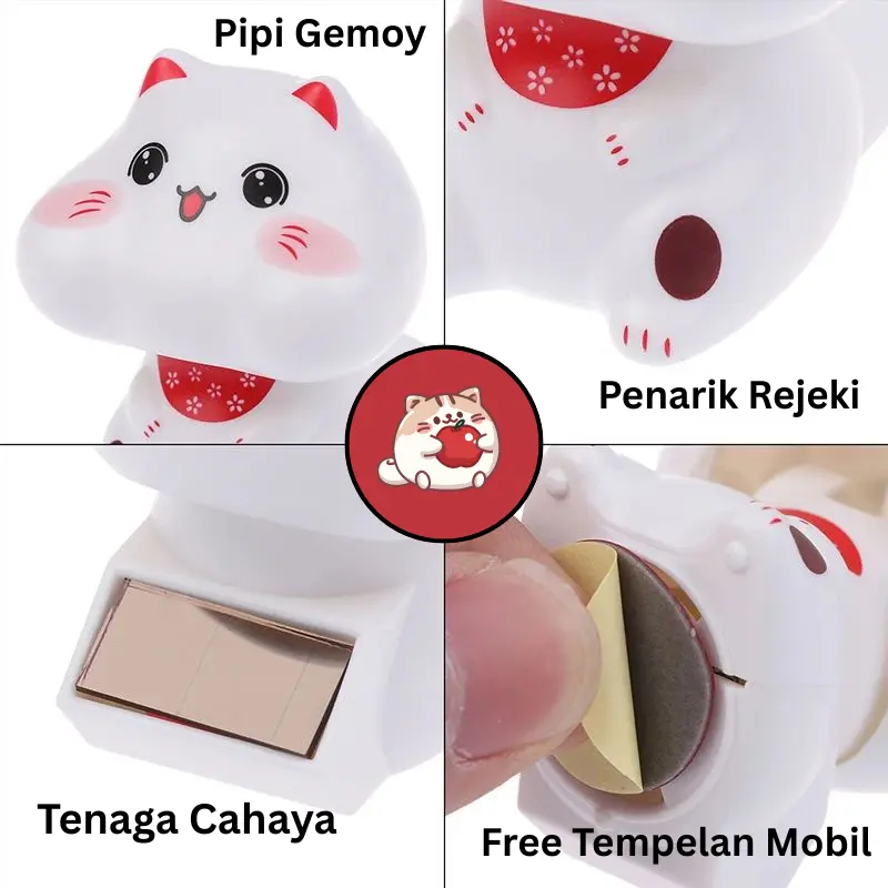 Pajangan Meja Ataupun Mobil Bergambar Kucing Putih (PIPI GEMOY) Kepala dapat bergoyang apabila Terkena Cahaya (Lampu / Matahari)