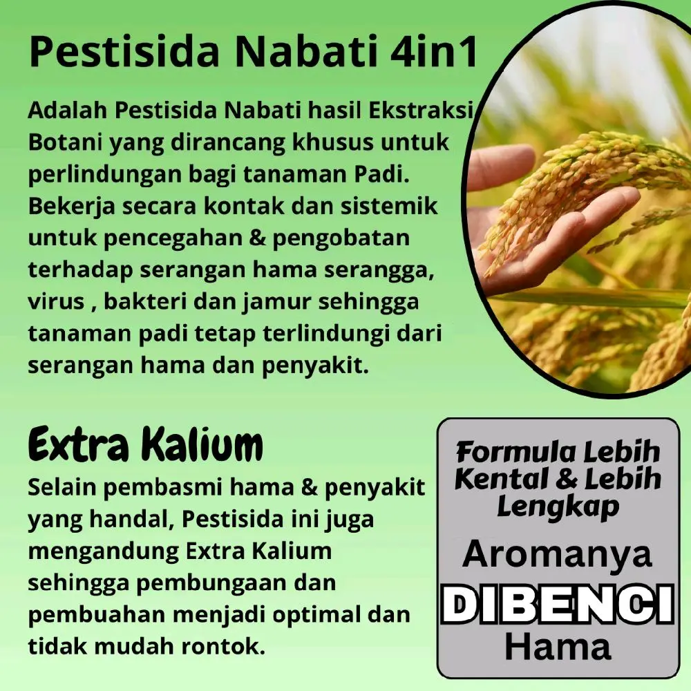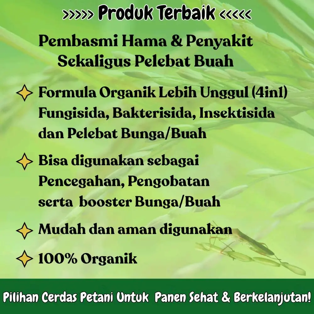 1. PEMBASMI MULTI-HAMA: Sangat efektif mengendalikan Wereng Cokelat, Walang Sangit, Penggerek Batang (Sundep/Beluk), Ulat Grayak, dan Hama Putih Palsu.