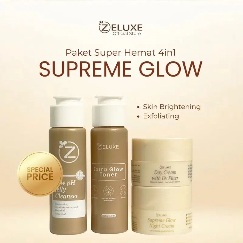 Supreme Glow Package adalah solusi perawatan kulit terbaik dari pagi hingga malam. Dirancang untuk membantu mencerahkan, melembapkan, dan menjaga kesehatan kulit Anda setiap hari. Paket ini terdiri dari: