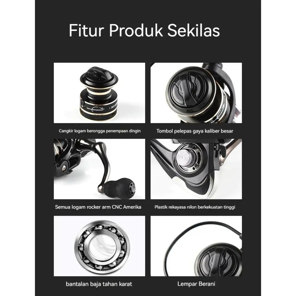 Reel pancing ini memiliki konstruksi aluminium tahan karat, dilengkapi 18 ball bearing dan gear ratio 9.2:1. Desain handle yang bisa diubah kiri atau kanan, sangat ideal untuk mancing ikan besar di berbagai medan. Cocok untuk sungai, danau, pantai, dan laut.