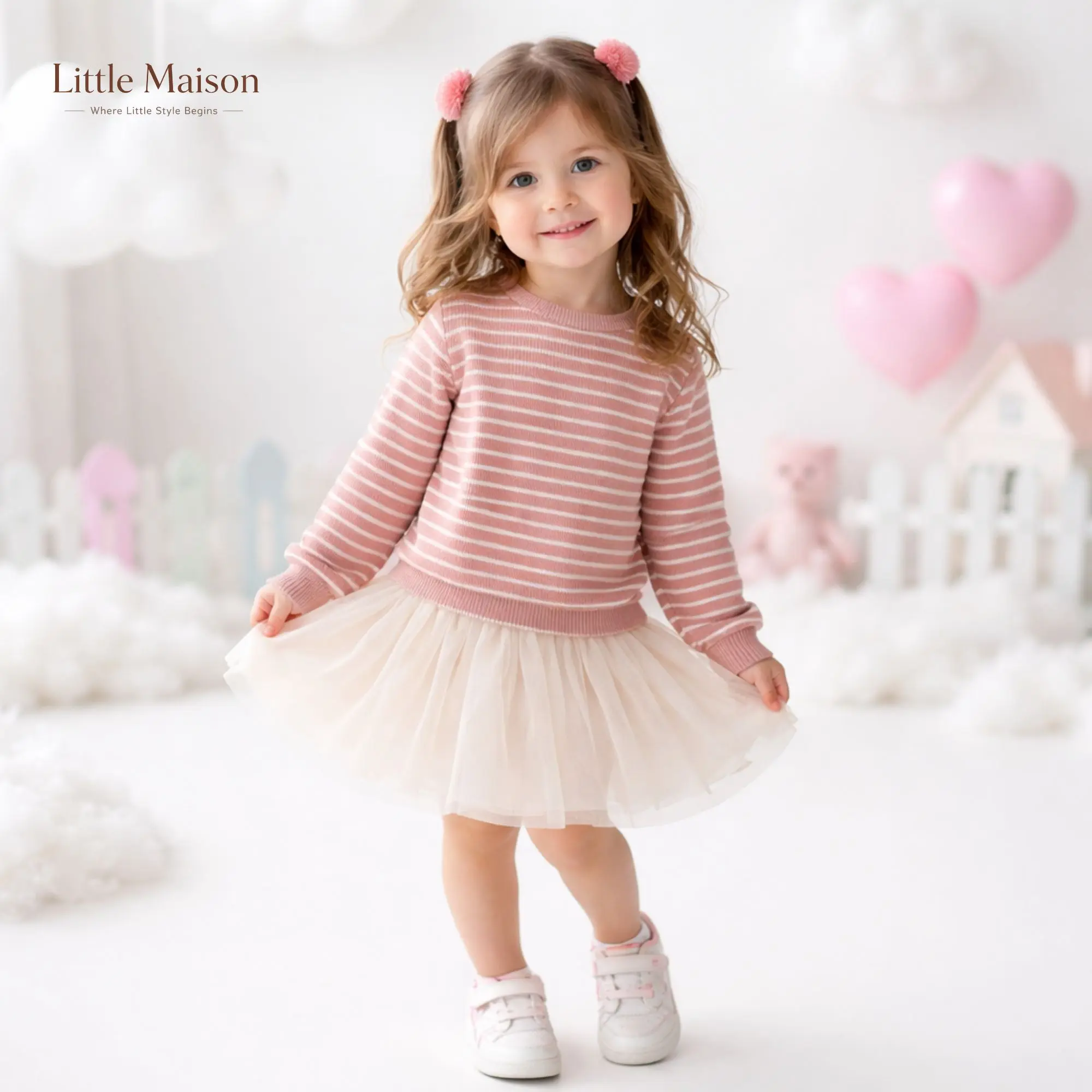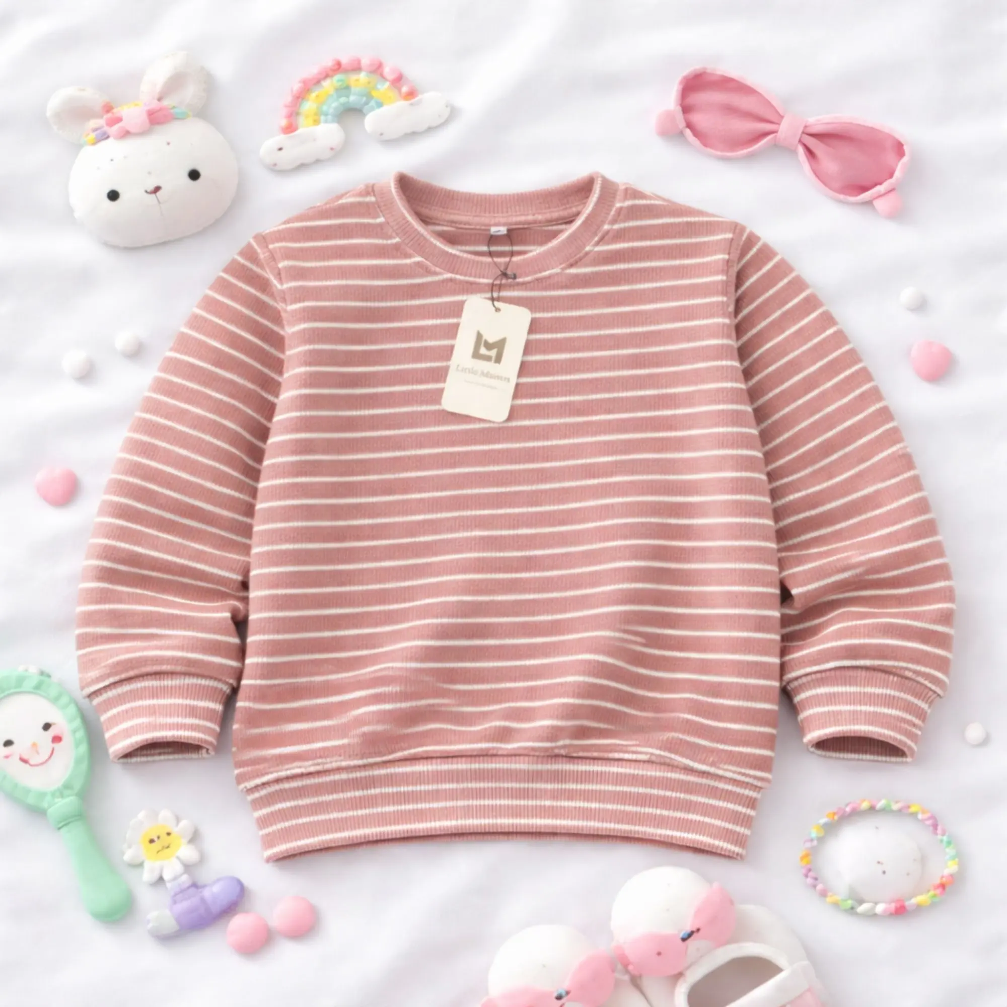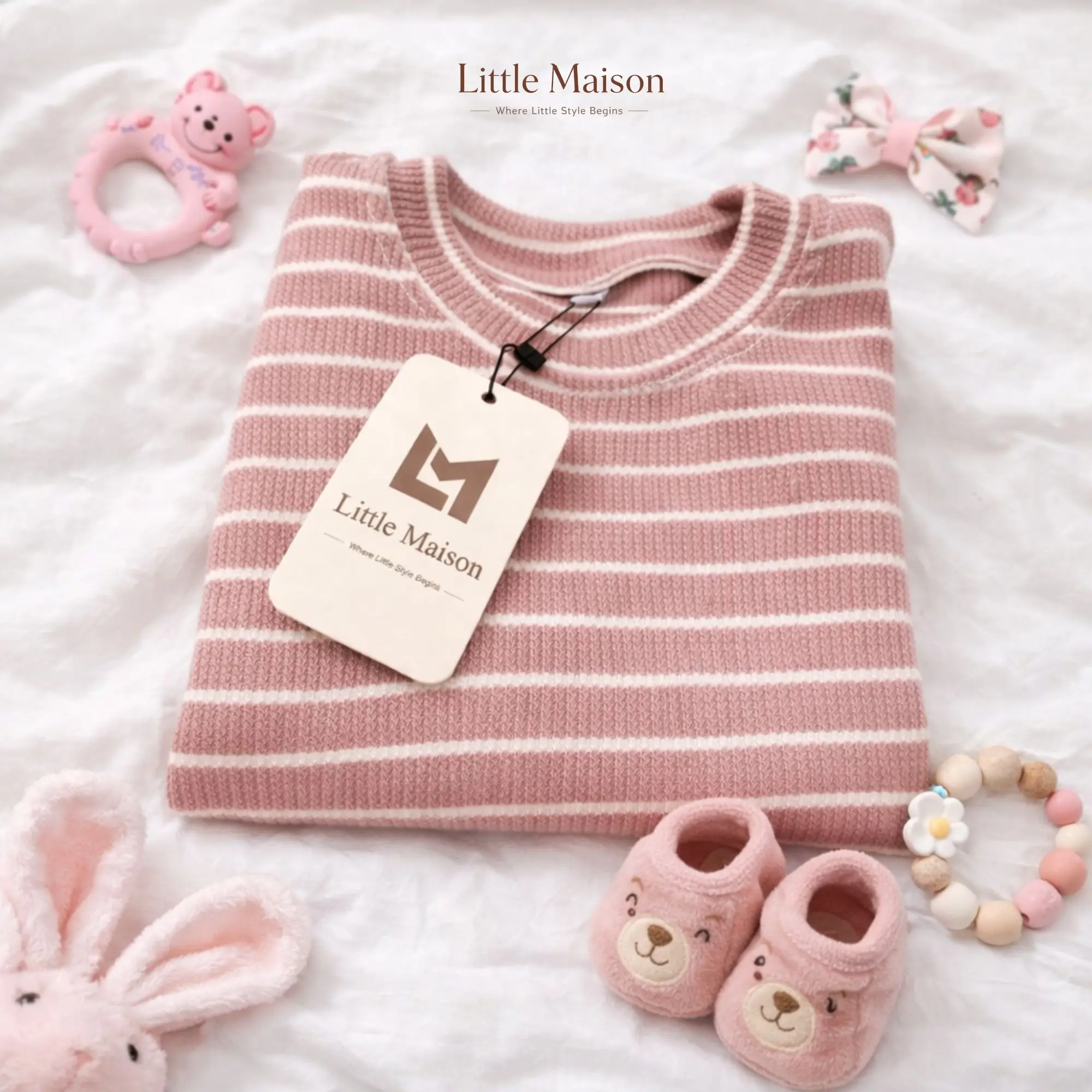 Sweater anak dengan desain stripe minimalis warna dusty pink yang super manis dan kekinian Cocok dipakai untuk aktivitas sehari-hari, jalan-jalan, atau outfit foto yang aesthetic!