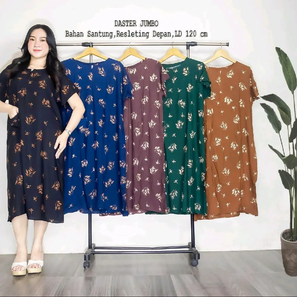 5. Daster Jumbo kekinian Bahan Santung Resleting Depan LD 120 cm untuk Wanita