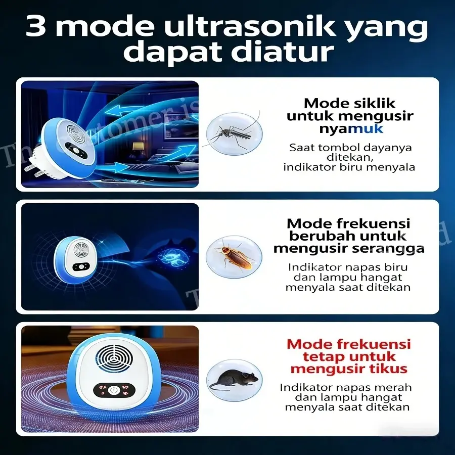 Tidak Berisik: Karena gelombang suara yang digunakan tidak dapat didengar oleh manusia, tidak ada suara atau bau saat diaktifkan, sehingga wanita hamil atau anak-anak di rumah juga dapat menggunakannya.