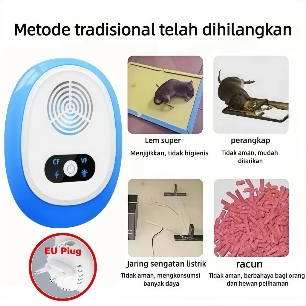 Pengusir Serangga Ultrasonik Elektronik: Memanfaatkan gelombang biomimetik dan gelombang ultrasonik, dikombinasikan dengan teknologi konversi frekuensi cerdas, terus-menerus memancarkan gelombang suara dari pita frekuensi yang berbeda untuk mencegah tikus beradaptasi dengan gelombang suara, sehingga serangga atau tikus sulit beradaptasi dan mengusirnya.